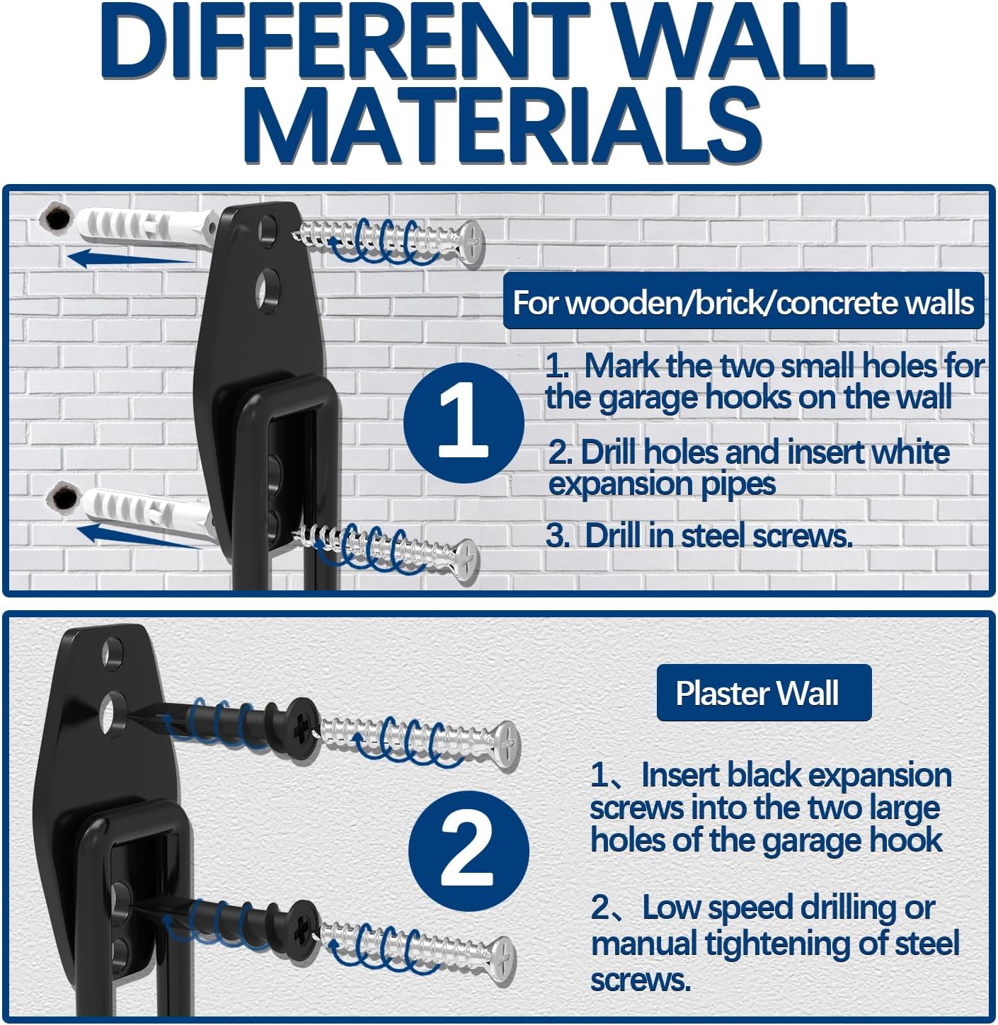 - Comes with Screws For Easy Installation: Each garden hose wall mount provides 2 types of screws and anchors. By simply using a drill and screwdriver, our wall mounted hose holder can be easily mounted to drywall, wooden walls, or concrete walls. These hose hangers are a reliable option for organizing your space. Once installed, they allow you to hang items and free up floor space