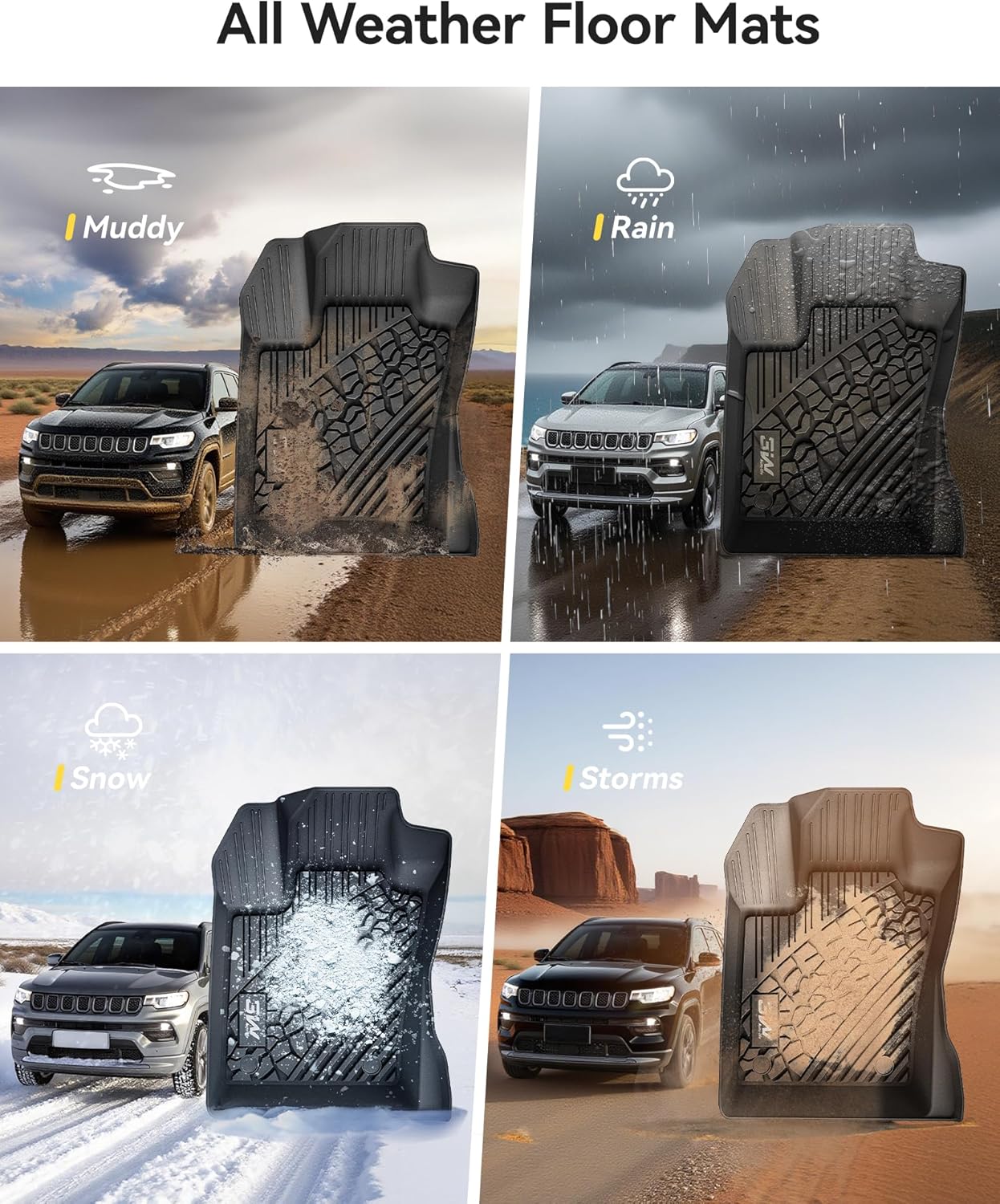 - PERFECT FIT: Crafted with precision using 3D scanning technology and thermoplastic elastomer (TPE) material, perfect design for maximum coverage and protection with TPE material which ensures for Jeep Compass more strength, resilience, durability and elasticity.