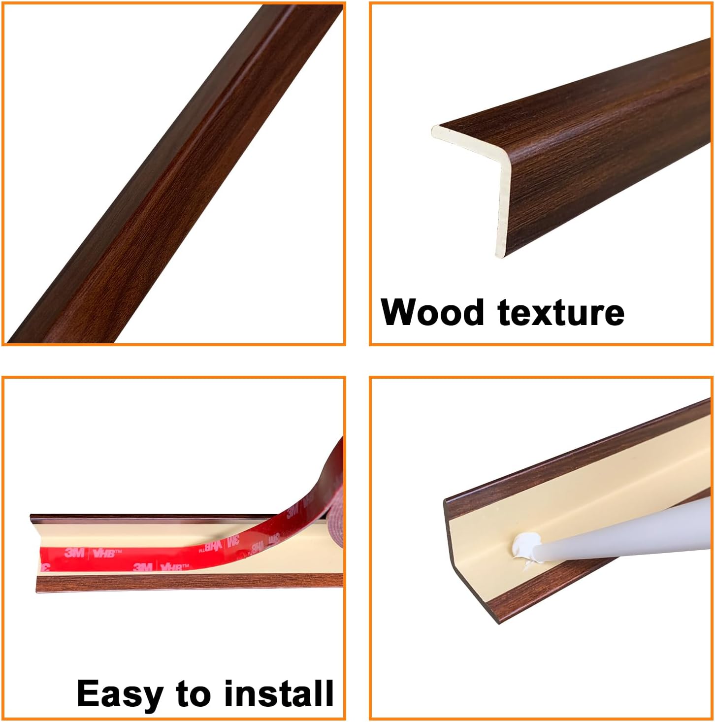 Wall Corner Protector 3PCS 45" Corner Molding Trim Walnut Wood Grain Corner Trim Decorative Strips for Door and Window Frames Mirror Edges Ceramic Tiles, and Wooden Wall Edges.