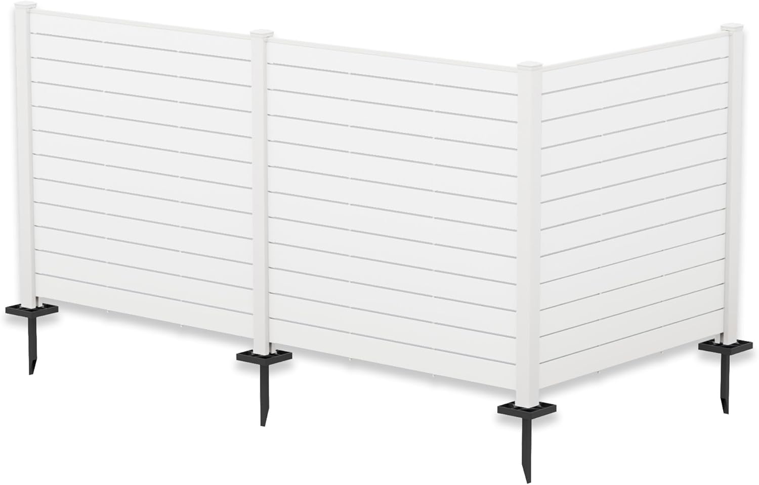 - π‘ Dimensions: The Kozyard W50*H48*D50 inches Privacy Fence Set includes 3 vinyl panels. The 11-inch galvanized steel stakes are easily inserted into the ground to provide a firm base for the panels, reducing direct damage from heavy rain or storms, enhancing aesthetics, and boosting durability.