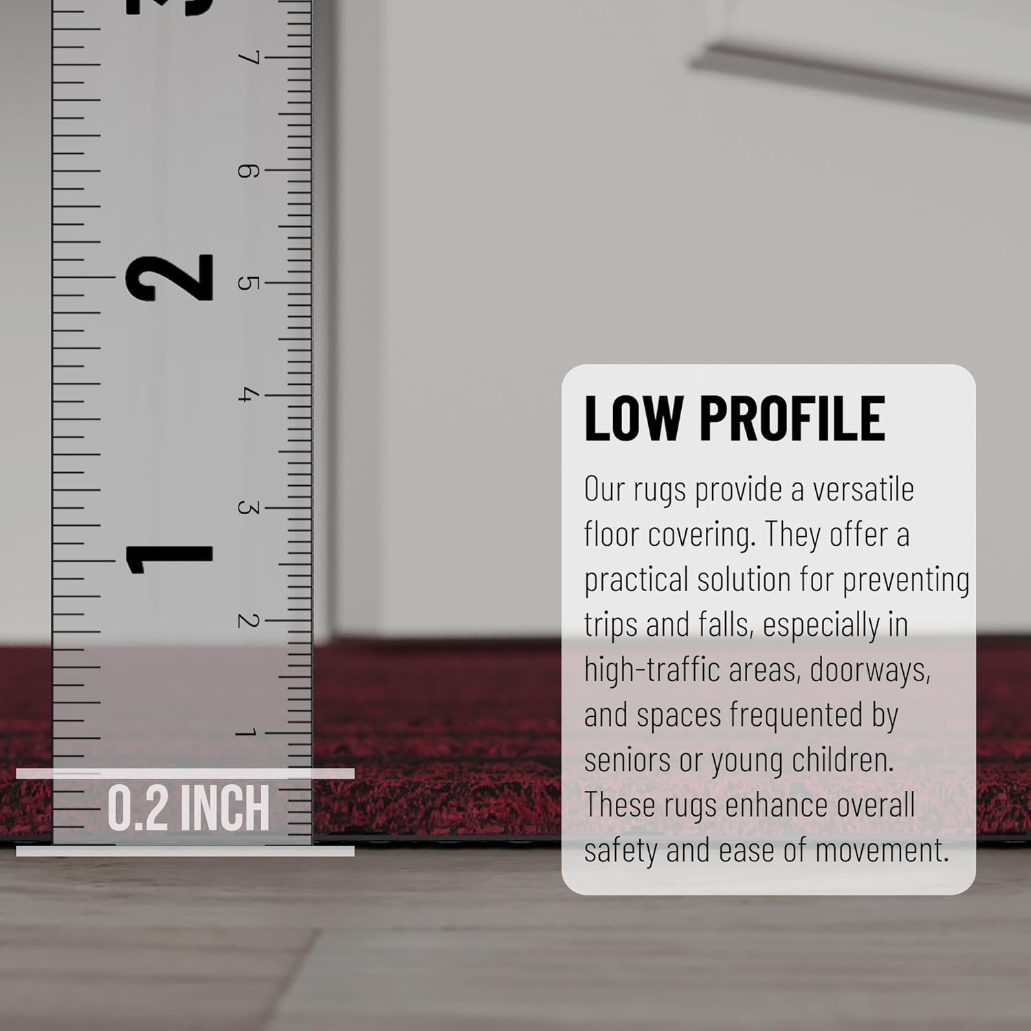 - [ULTRA THIN PILE]: An ultra thin pile thickness of 0.2 inches offers ideal functionality that is perfect for busy areas, underneath furniture, and in entryways as it will not obstruct doorways.