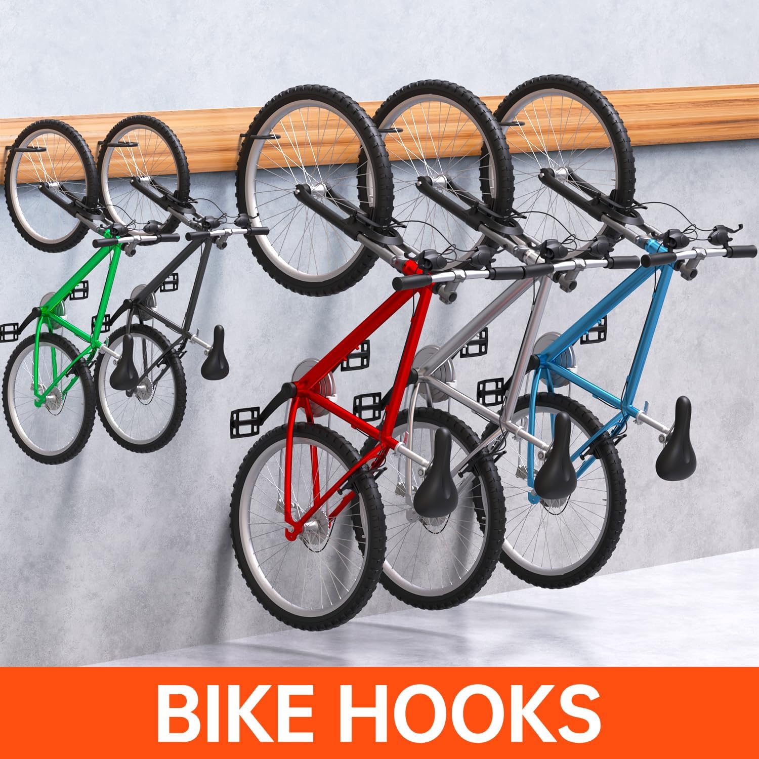 - They are the perfect solution for hanging bicycles, mountain bikes, fishing rods and tools, ladders, snowboards, golf bags, strollers, as well as more items in garages, gardens, and homes.