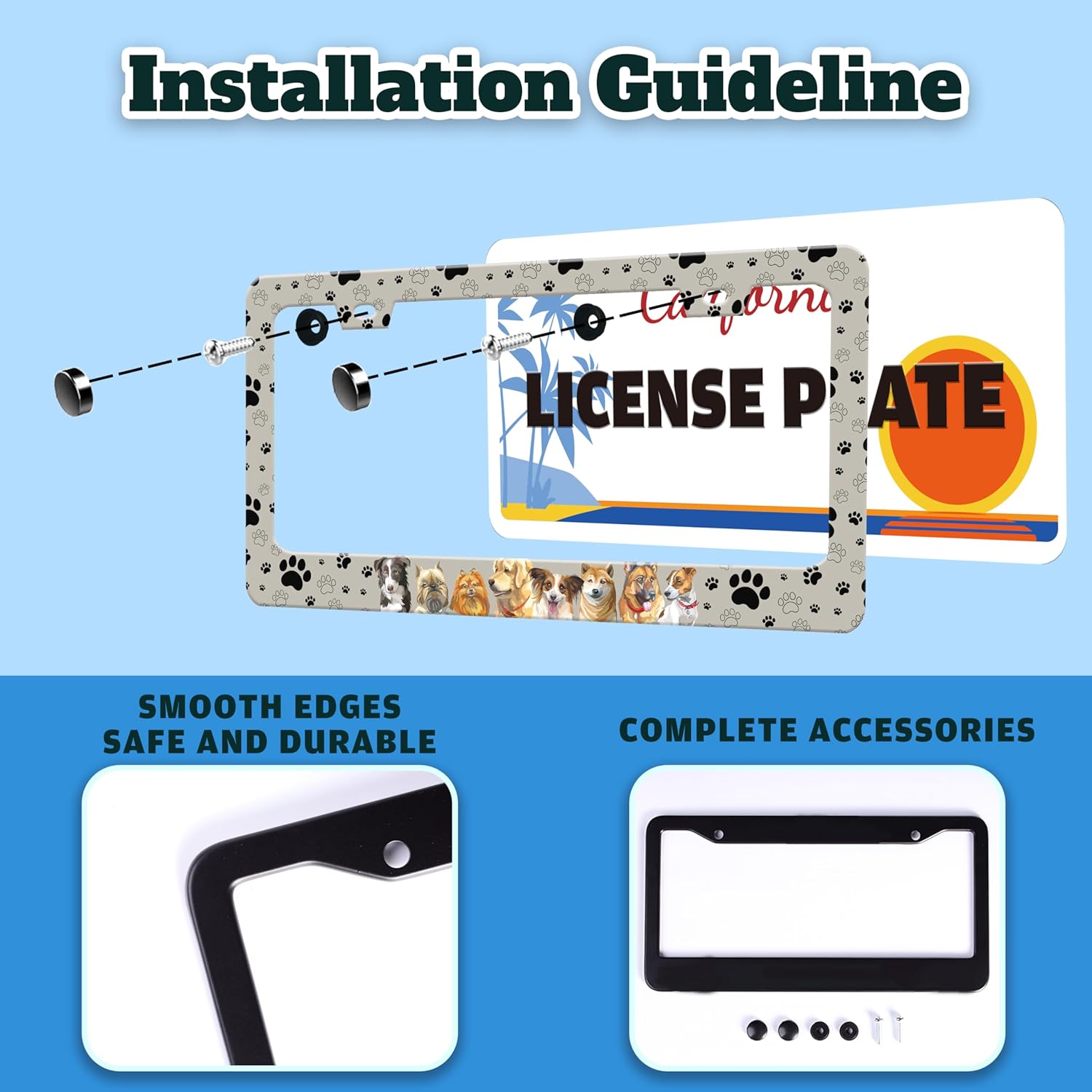 Dog License Plate Frame Pet Paw Prints Stainless Steel License Plate Holder for Front or Rear Car Tags Funny for Car Decoration Accessories with Screws 6.3 X 12.2 in for Women Men