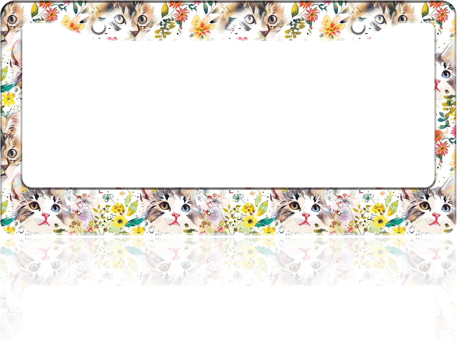 Cute Cat License Plate Frame Kitten Stainless Steel License Plate Holder for Front or Rear Car Tags Funny for Car Decoration Accessories with Screws 6.3 X 12.2 in for Women Men
