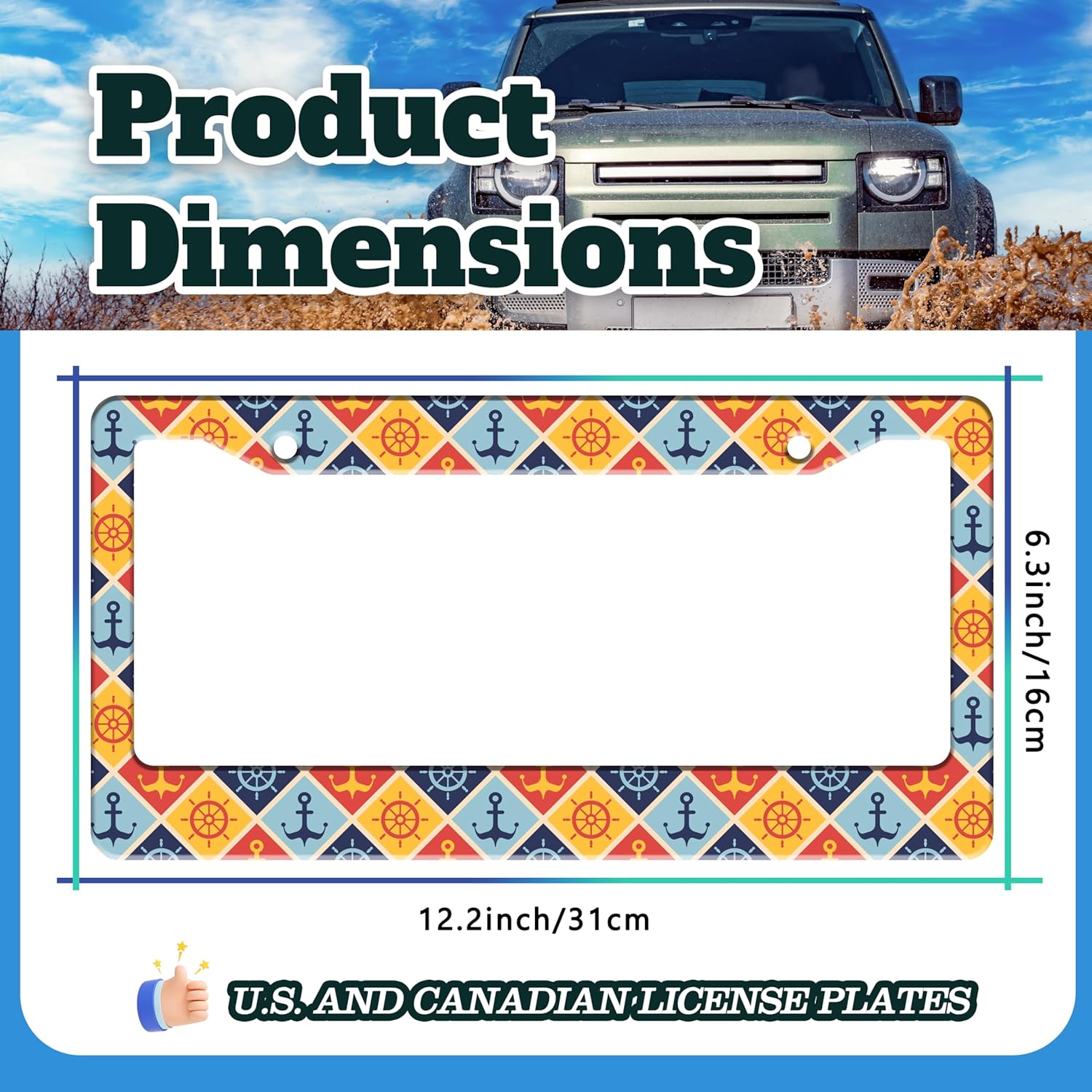 - 6.3 X 12.2 INCHES: Suitable for most standard size U.S. and Canadian license plates, can be applied to front or rear license plates, universal style. Add points to the beauty of your car!