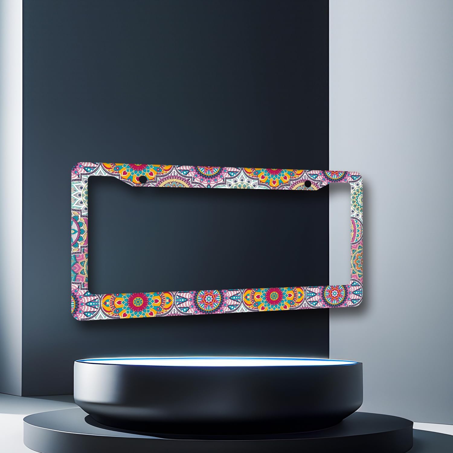 Mandala Hippie License Plate Frame Boho Print License Plate Holder Stainless Steel Front and Rear Car Tags Auto Parts Funny License Plate Decoration with Screws for Men Women s 12.2"x 6.2"