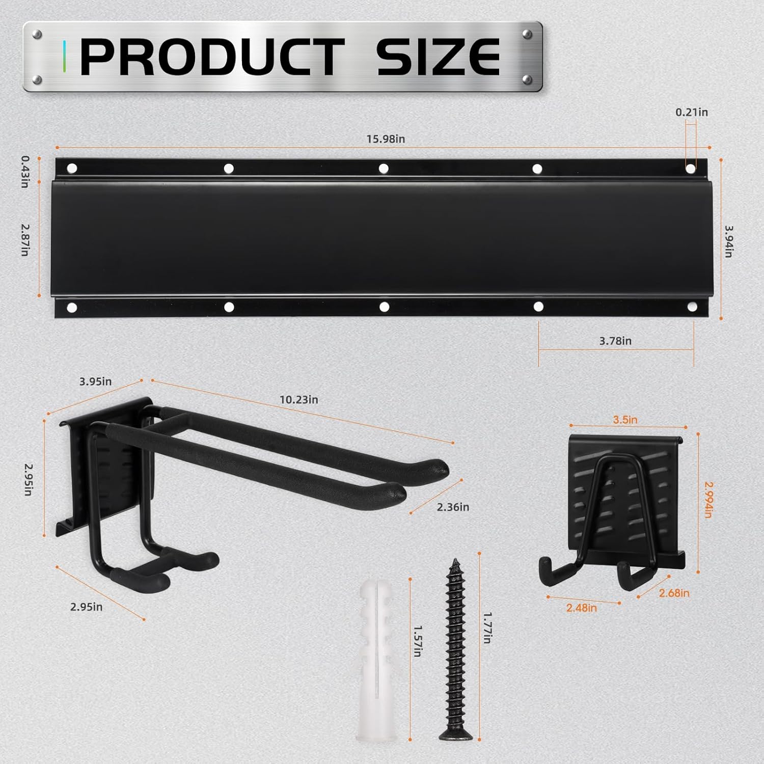 - 【EASY INSTALLATION】 Hooks of yard tool organizer for garage can be disassembled again and again, no need to assemble, just mark where you want to mount it, keep it level, mount the garage organizer wall mount to the wall with anchors and screws and use it.