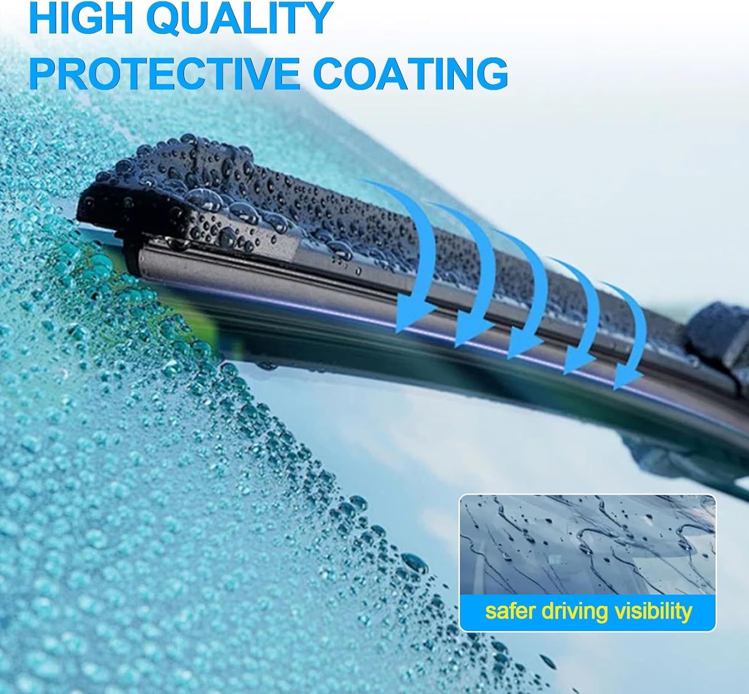 - 【Performance】The car windshield wiper blades are made of natural rubber. It adopts advanced technology and quality protective coatings, which are more durable and noise free after processing.