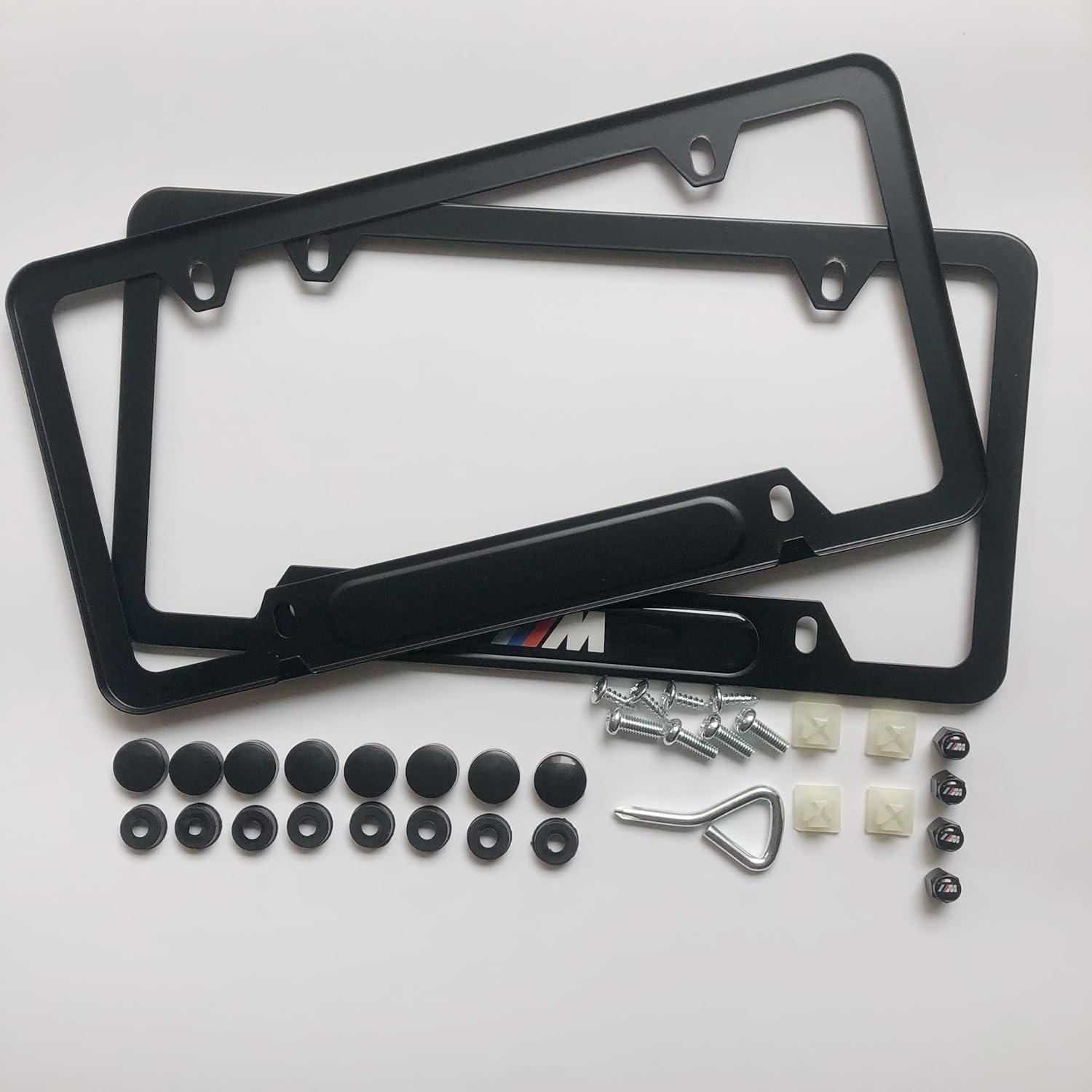- What you will get: 2 license plate frame cover, 4 Screw Caps, 4 Self-tapping Screws, 4 Machine Screws, 4 Washers, 1 Screwdriver.All the necessary accessories provided for your installation.