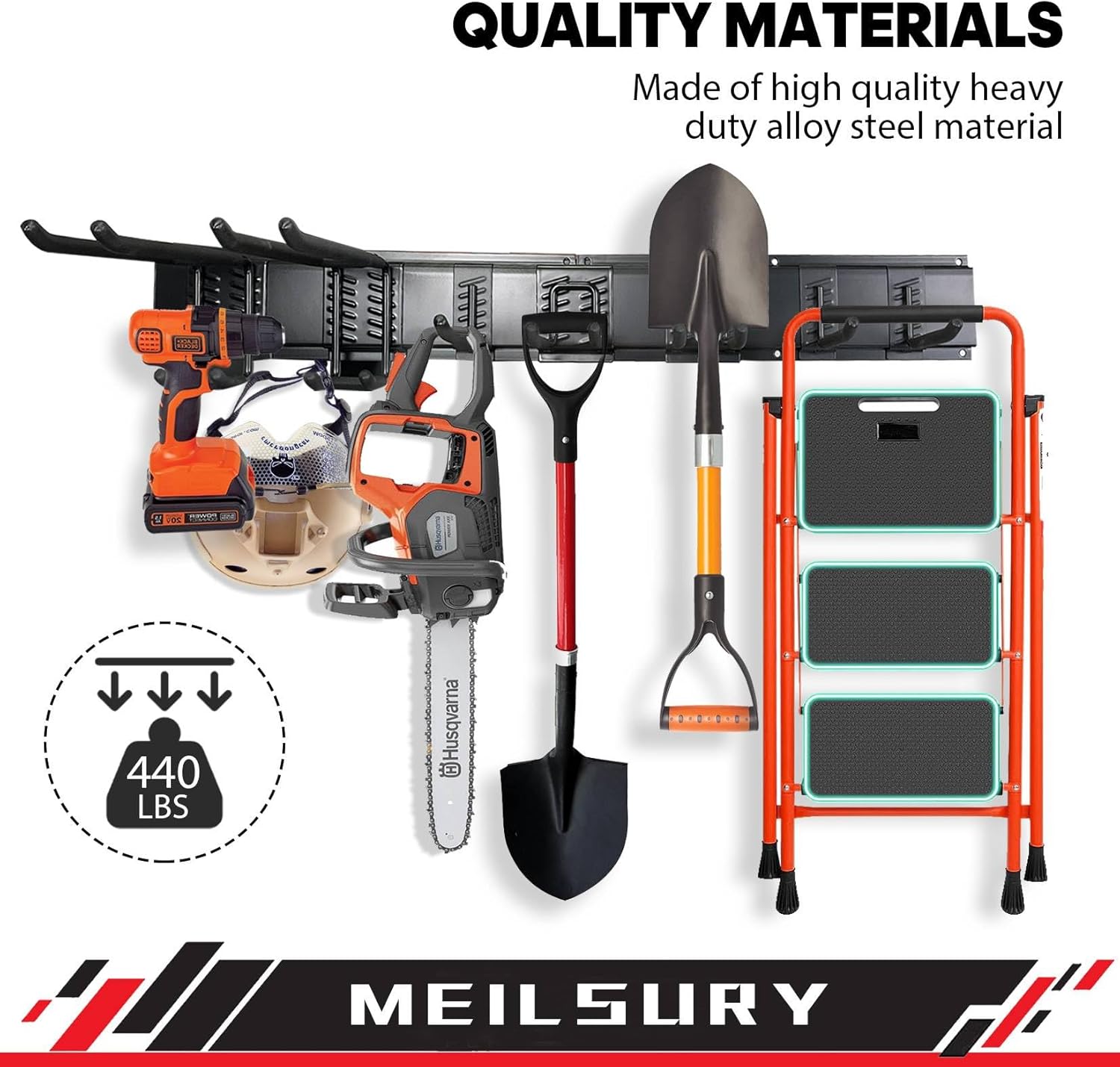 Garage Storage, 48-INCH Garage Tool Organization Wall Mount, Upgraded to Support Max 440lbs Garage Garden Tool Organizer, Professional Wall Mount Tool Storage Racks with 3 Rails and 7 Hooks