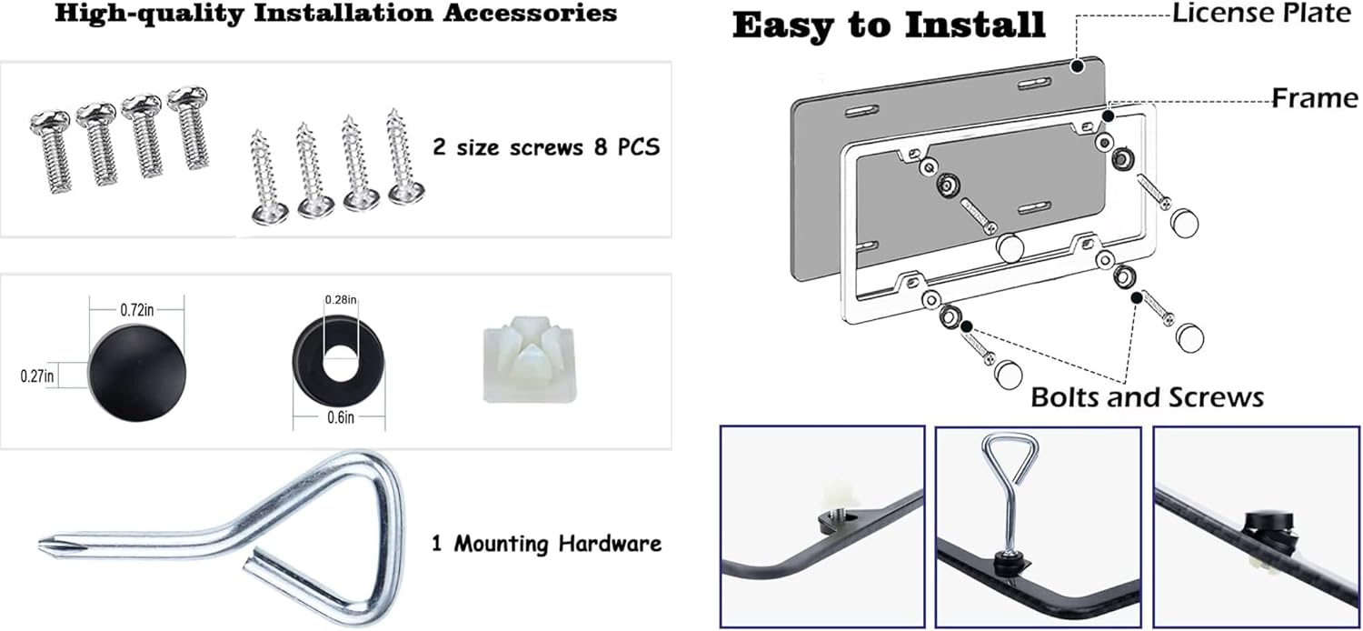 - Easy to Install:No special skill required, simply slide your license plate into the holder and secure it with the included hardware.We already provide the simple tools for your installation