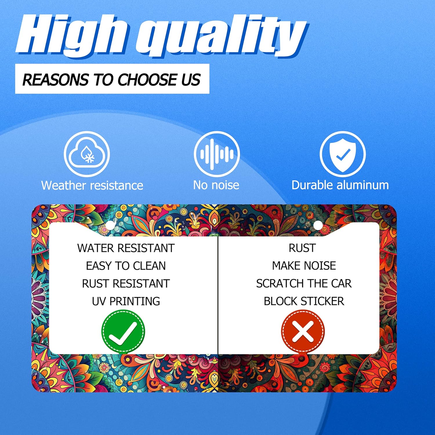 Boho License Plate Frame Beautiful Mandala Flowers License Plate Stainless Steel Funny License Plate Holder Hippie Car Accessories Decoration with 2 Screws Fits Standard Vehicles Size 12.3" x 6.3"