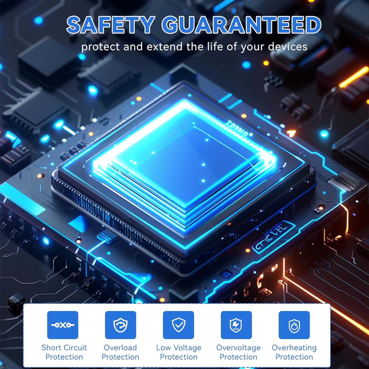 - Safe Operation: Built-in cooling fan, overload, short-circuit, and overheating protection for reliable performance.