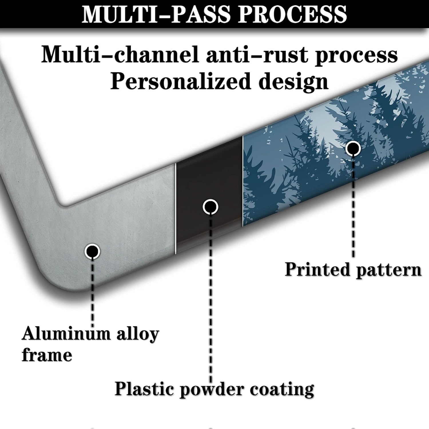 License Plate Frames for Women Multicolor License Plate Cover for Men Misty Forest Aluminum Metal Car Accessory 2 Pack with Screw Covers Set