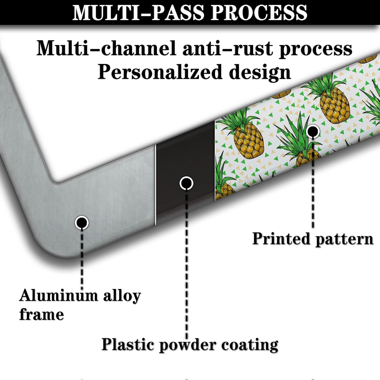 Car License Plate Frame Black Yellow License Plate Frames Yellow Pineapple Aluminum Metal Car Accessory 2 Pack with Screw Covers Set