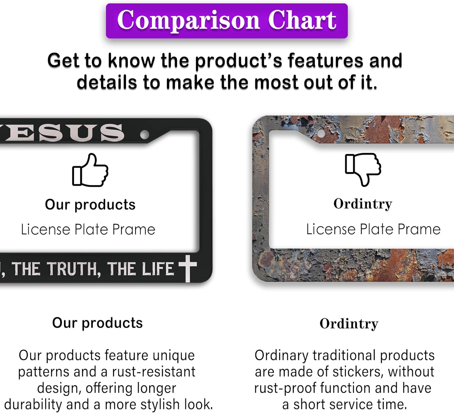 License Plate Frames Black and White Car Plate Frames Jesus The Way The Truth The Life Universal Aluminum Car Accessory 2 Pack with Screw Covers Set