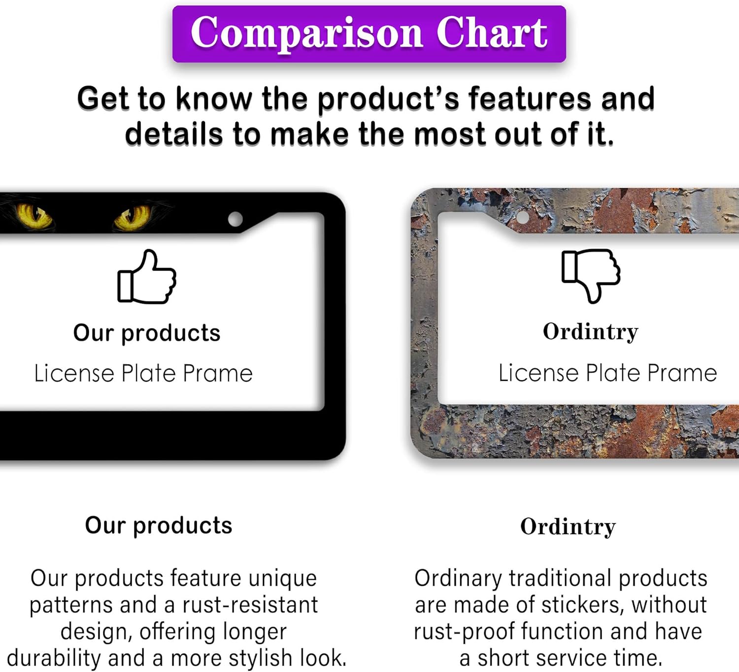 - ALUMINUM FRAME: This License Plate Frame is crafted from high-quality aluminum that is resistant to corrosion, rust, and harsh weather conditions. Its rugged reliability design ensures a long lifespan, making it capable of withstanding car washes and extreme weather, providing you with a reliable and stylish solution for your vehicle.