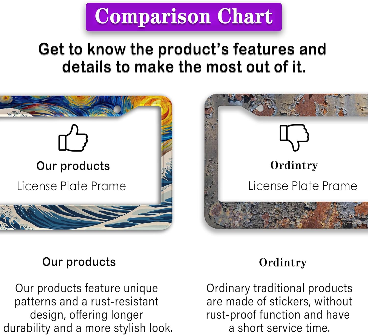 - FUNNY DESIGN: Featuring a unique and customized design, this license plate frame creates an eye-catching and bold statement for your vehicle. Not only does it add a touch of personality to your car, but it also makes for a great holiday gift, souvenir, or decorative piece for family, friends, and colleagues. Elevate your vehicle's style while sharing a laugh!