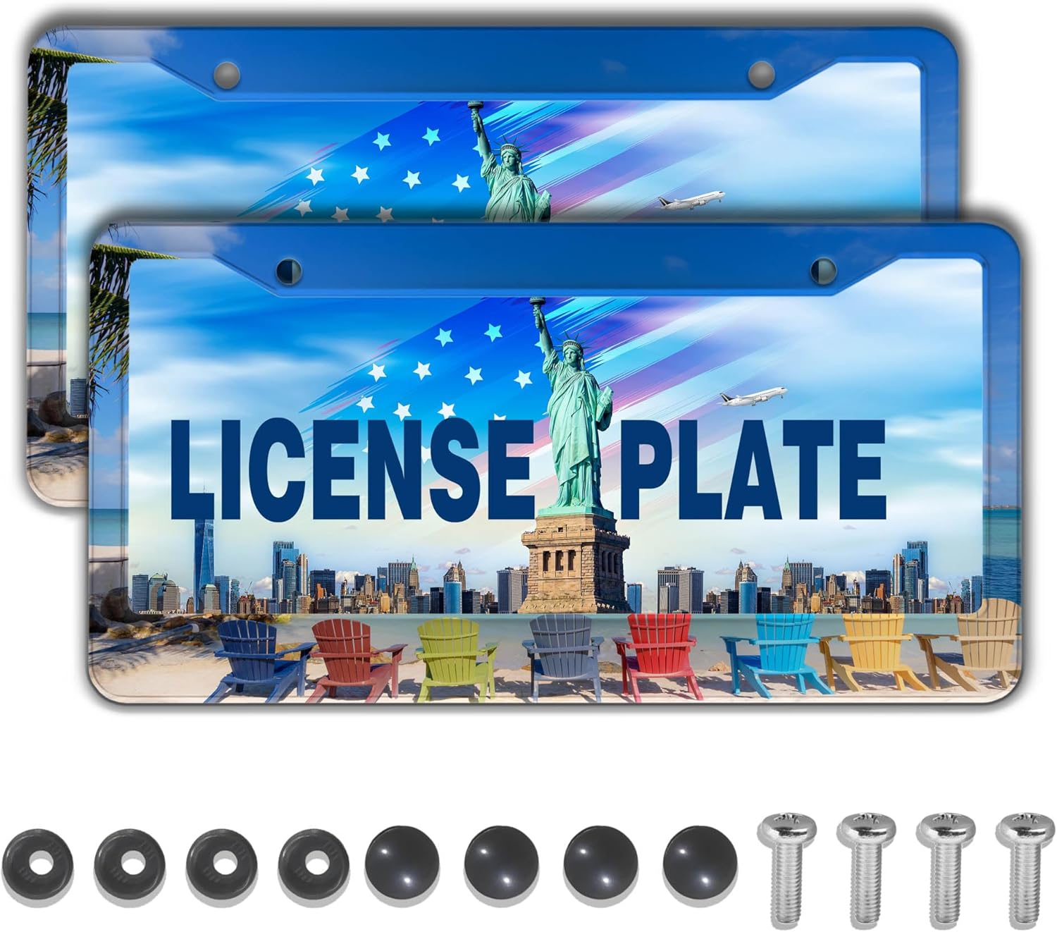 - ALUMINUM FRAME: This License Plate Frame is crafted from high-quality aluminum that is resistant to corrosion, rust, and harsh weather conditions. Its rugged reliability design ensures a long lifespan, making it capable of withstanding car washes and extreme weather, providing you with a reliable and stylish solution for your vehicle.