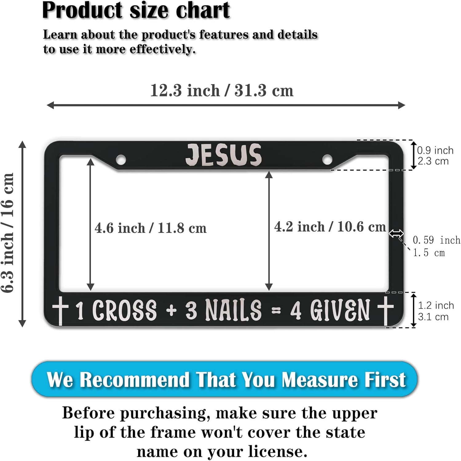 Fun License Plate Frame Cover Black and White License Plate Frames Jesus 1 Cross 3 Nails 4 Given Universal Aluminum Car Accessory 2 Pack with Screw Covers Set