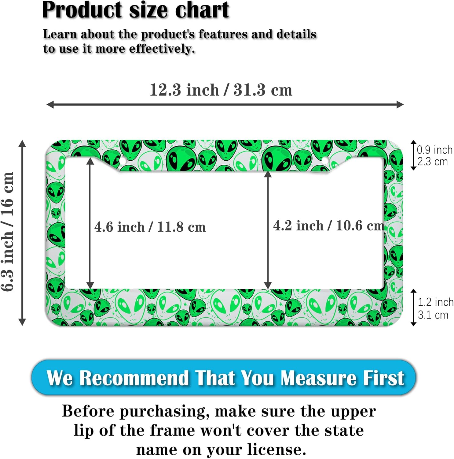 License Plate Covers for Men Green License Plate Frames for Women Alien Universal Aluminum Car Accessory 2 Pack with Screw Covers Set