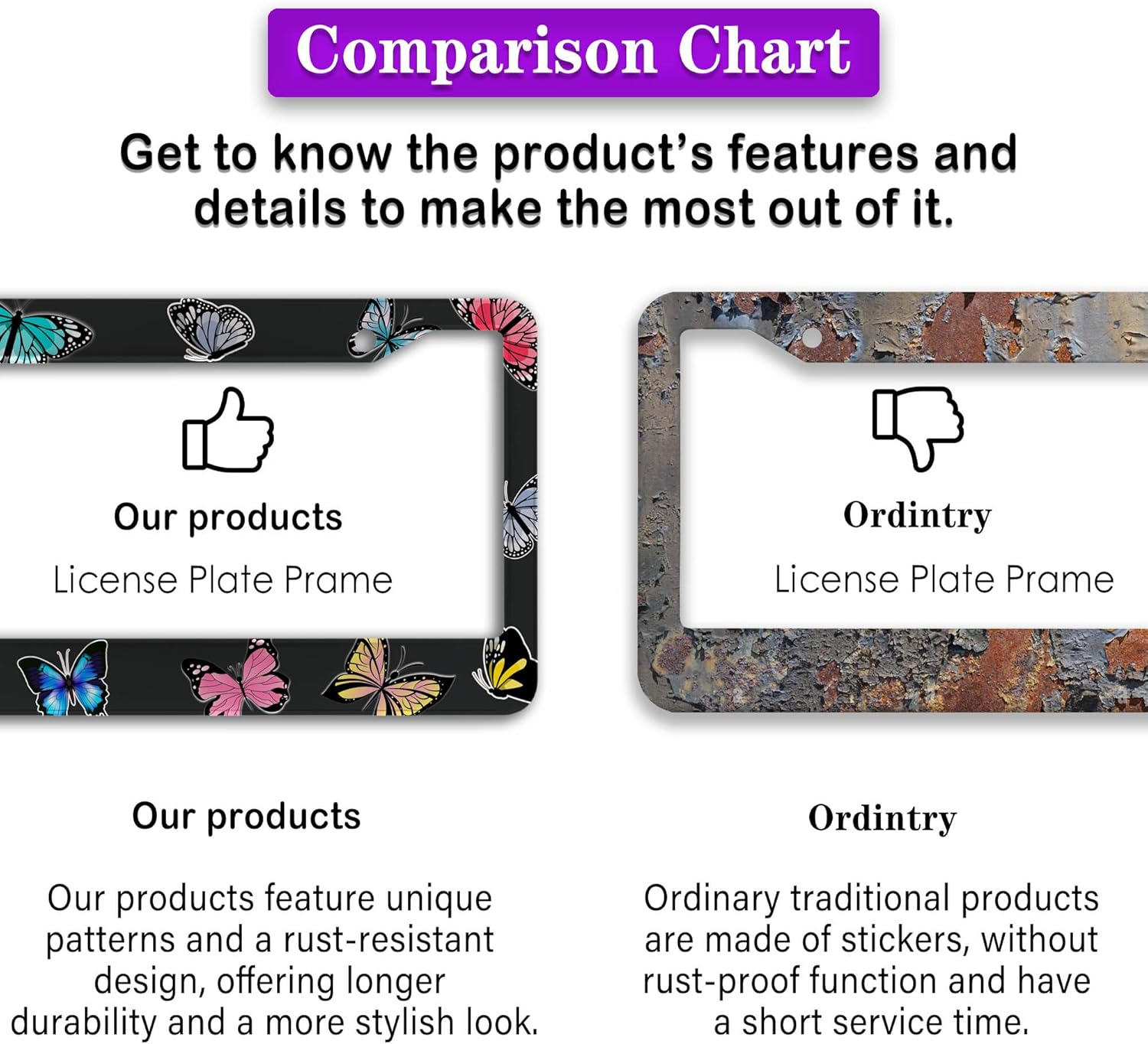 License Plate Frames for Women Multicolor License Plate Frame Holder for Men Butterfly Aluminum Metal Car Accessory 2 Pack with Screw Covers Set