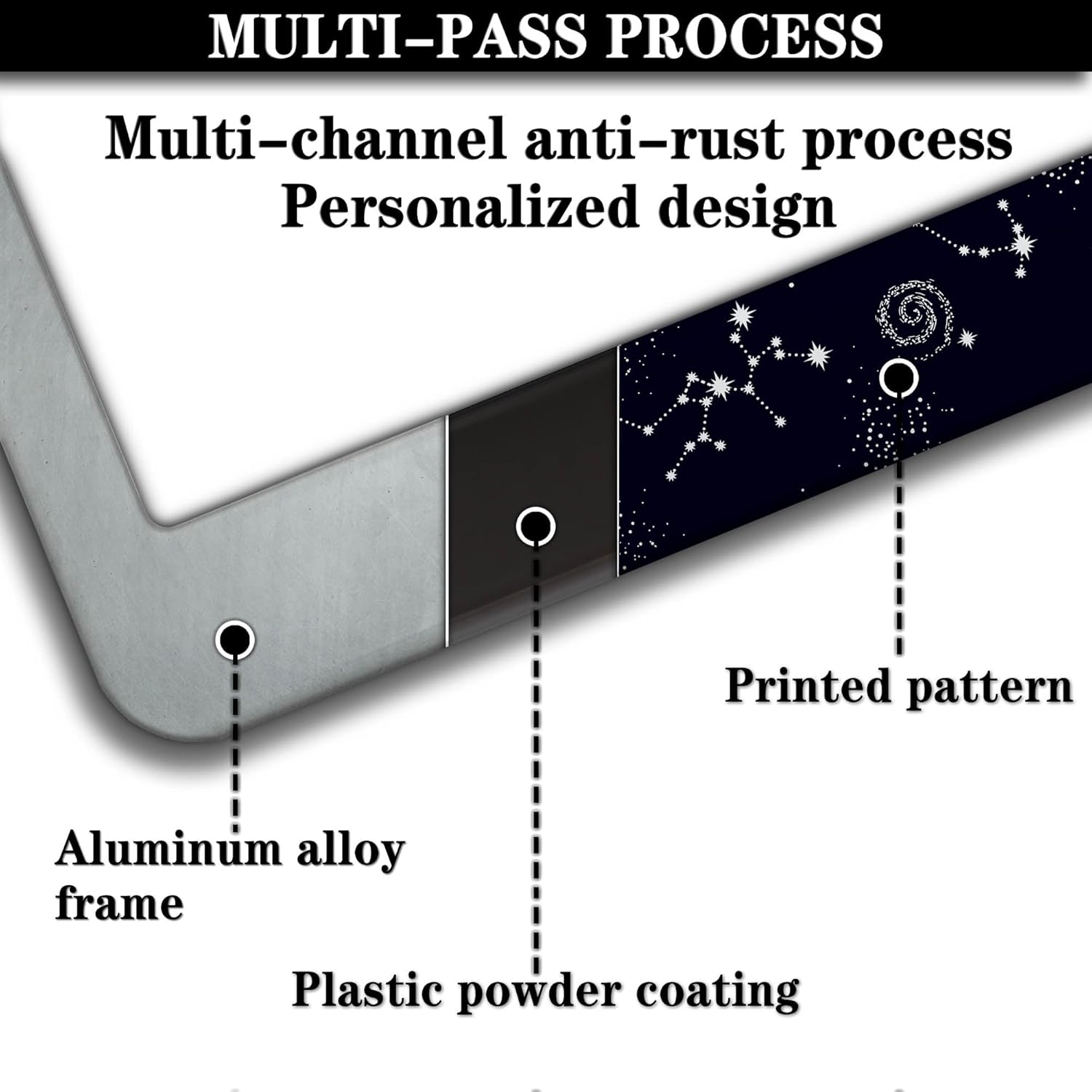 License Plate Frames Black and White License Plate Holder Galaxy Moon and Stars Starry Sky Planets Aluminum Metal Car Accessory 2 Pack with Screw Covers Set