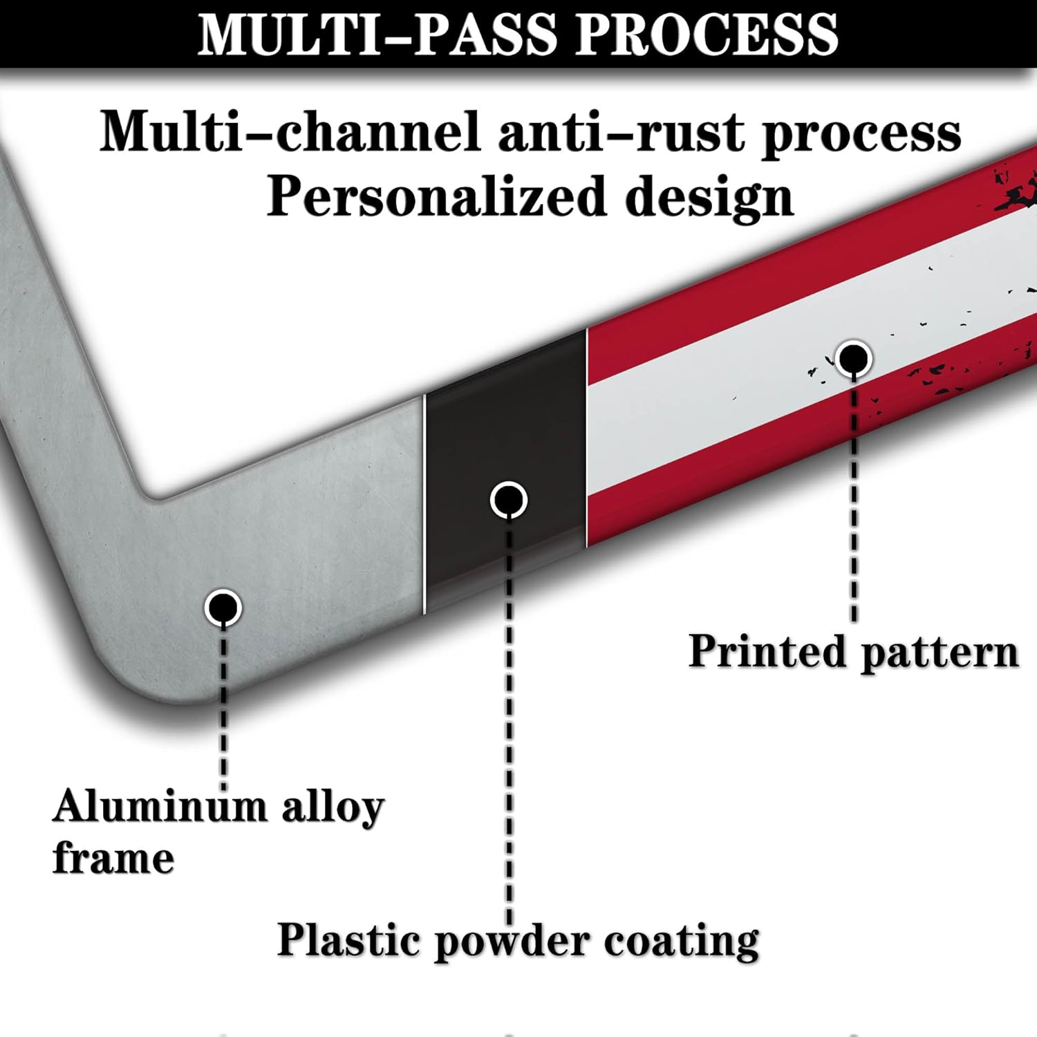 - ALUMINUM FRAME: This License Plate Frame is crafted from high-quality aluminum that is resistant to corrosion, rust, and harsh weather conditions. Its rugged reliability design ensures a long lifespan, making it capable of withstanding car washes and extreme weather, providing you with a reliable and stylish solution for your vehicle.