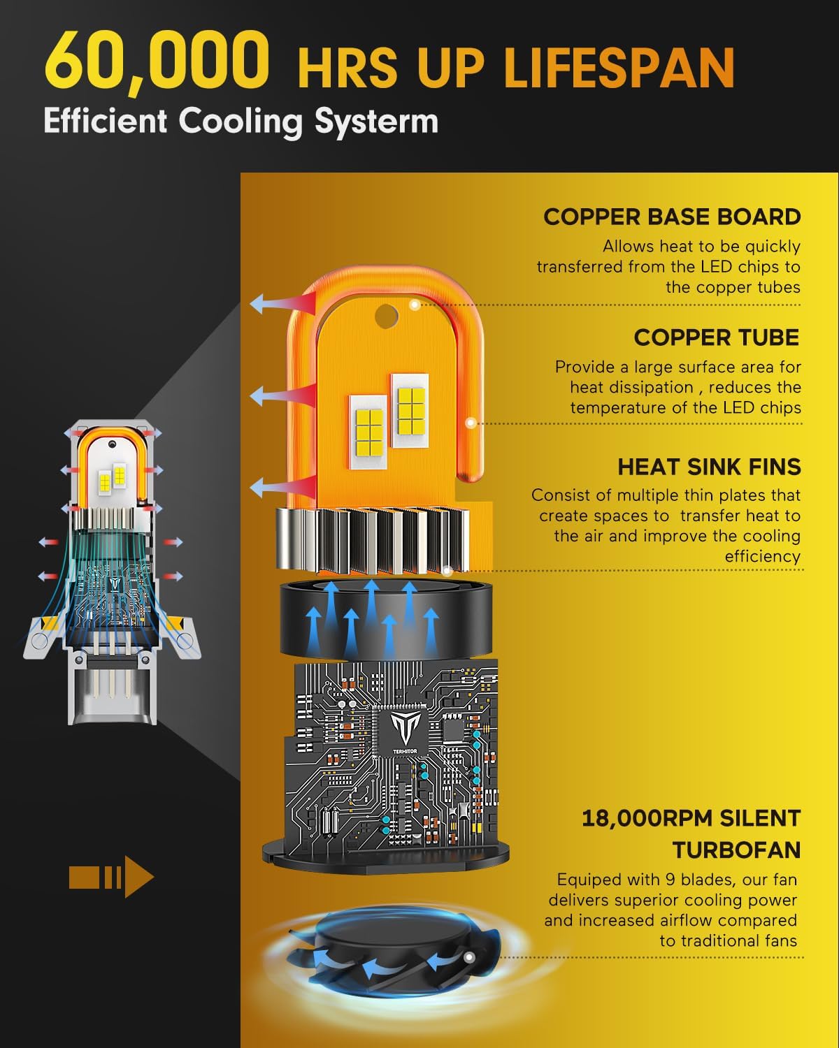 - 【Brightness increased by 1000%】Quality is better than quantity, Fahren 20S series new generation H13/9008 bulbs focus more on the fine craftsmanship of each chip, carefully upgrading 24 large high-performance chips. It can provide 60000LM light output, 6500K cool white light, 1000% brighter than the original halogen bulb, providing clearer and more precise light, ensuring driving safety at night and in bad weather conditions.