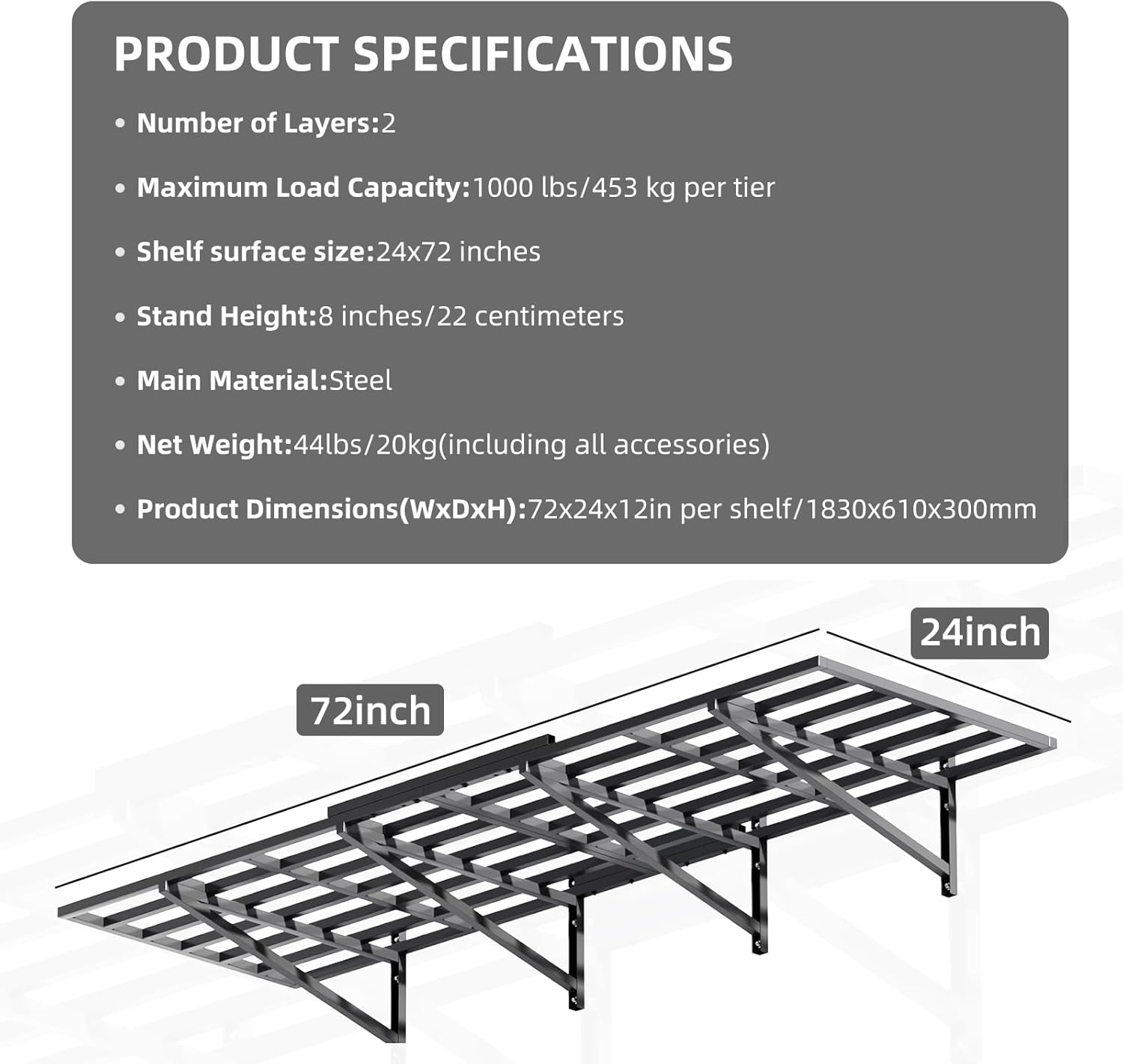 - Package Included: Contains 2-Pack garage wall-mounted shelves, all the wrenches you need, and expansion screws for cement walls and self-tapping screws for wooden walls (expansion screws are not required for wooden walls)