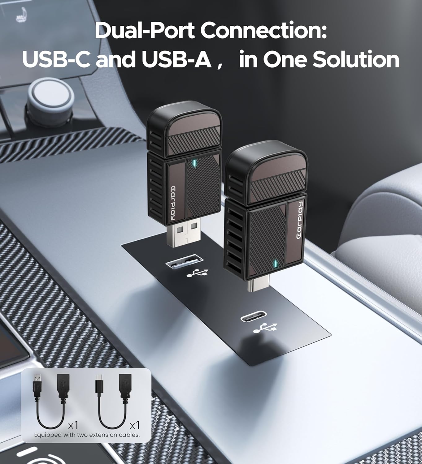 - 【2024 Wireless CarPlay Adapter】Sleek, lightweight, harnesses the power of the latest Bluetooth technology for a stable and instant connection with iPhone. Experience the elegance of a cable-free and the convenience of a plug-and-play setup. Enjoy the convenience of USB-C and USB-A connectors for wide compatibility. Enhance your driving with our intuitive voice control and personalized settings, designed for drivers seeking a seamless, safe, and stylish in-car experience *Only compatible with cars originally equipped with CarPlay