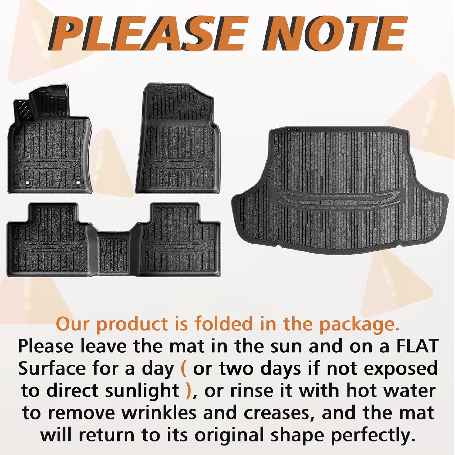 - Function & Why Us: Protect your car with full coverage, keeping a clean look and OEM style. 3D texture and anti-slip surface design ensure a flush fit and perfect stability. TripleAliner's mats feature reinforced edges for long-lasting performance