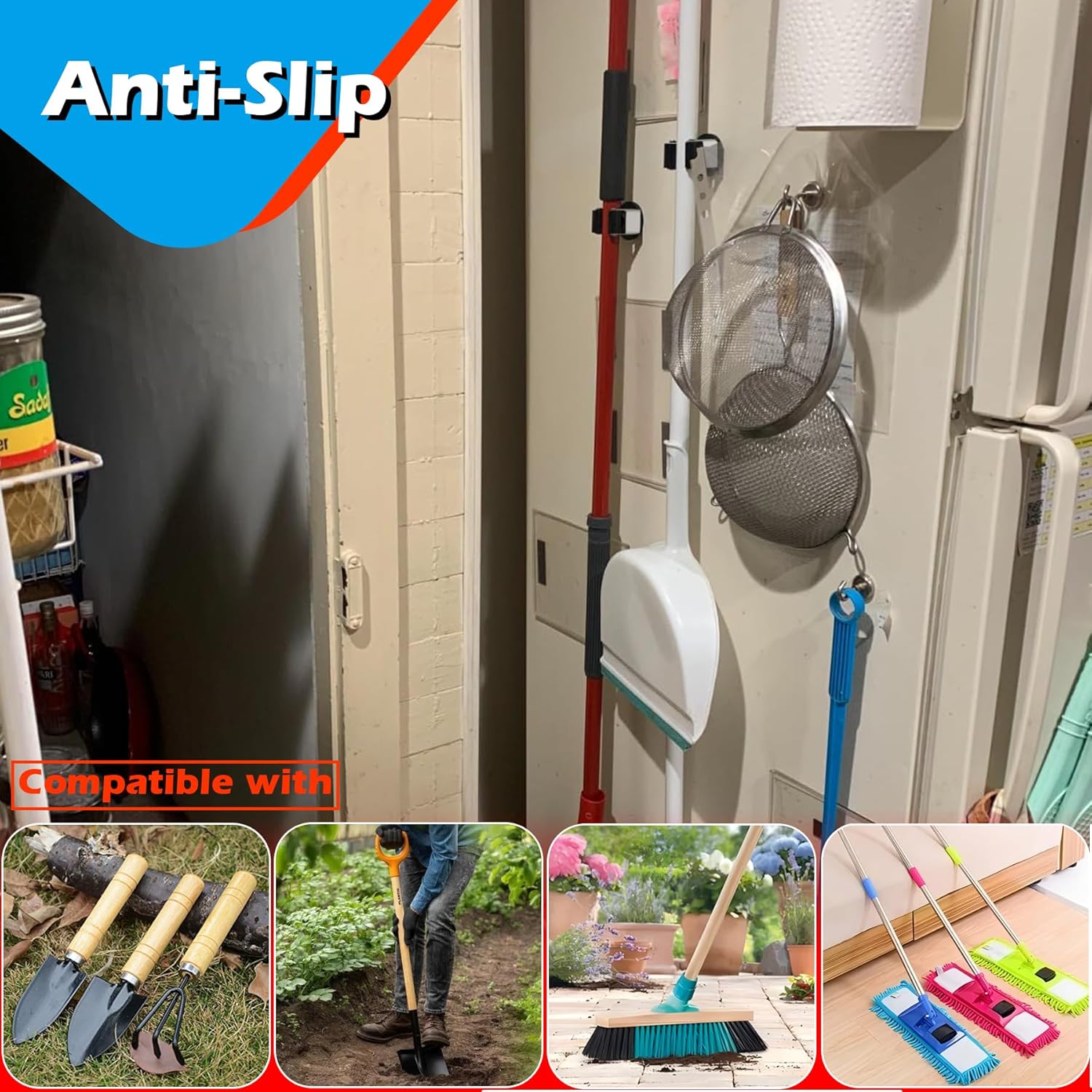 - Broom Holder Wall Mount Instant Install: Benefit with magnetic struction, mop and broom grippers are designed to make your life easier, such as holding dusters, dustpans, and other cleaning utensils, keeping everything within reach and well-organized