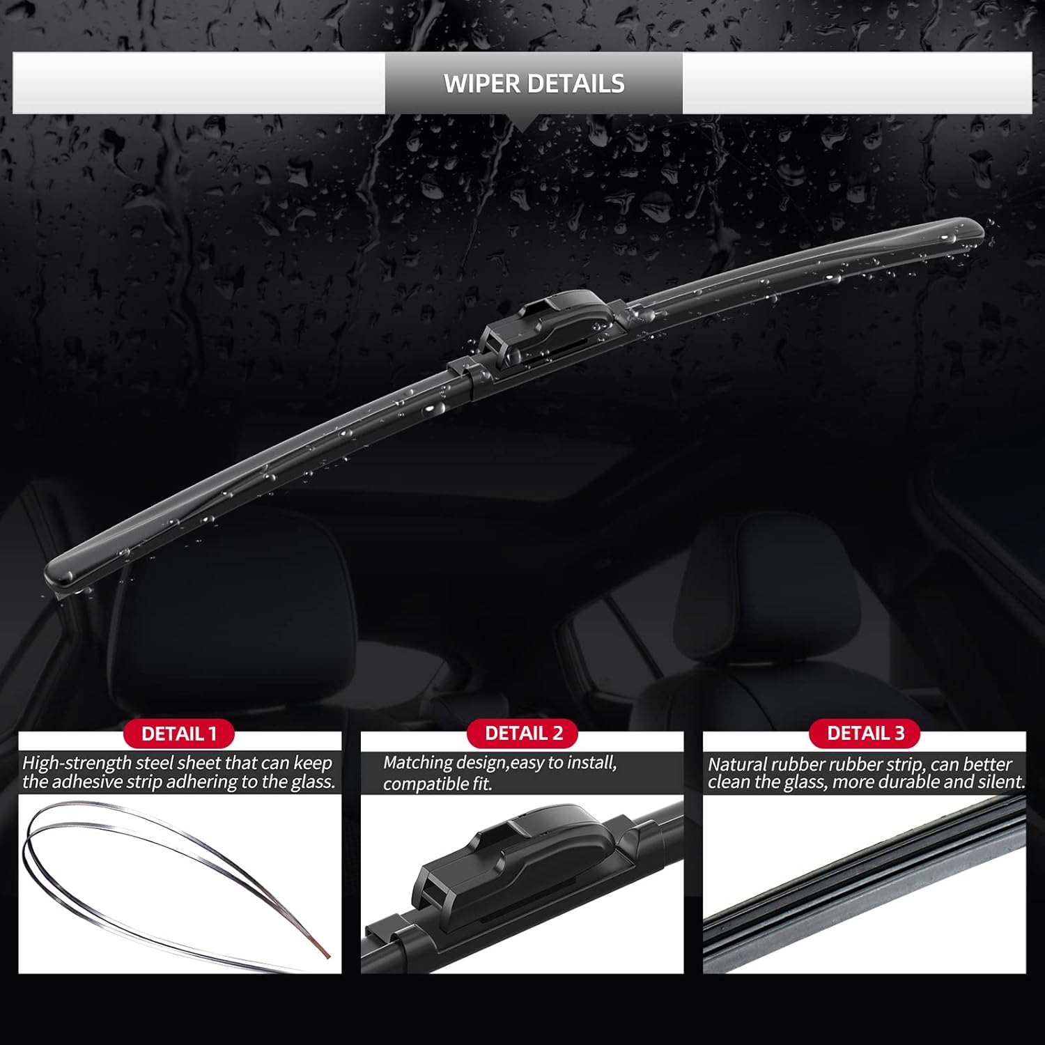 - Durable and Long-Lasting: Built with high-quality materials to resist wear and tear. These windshield wiper blades offer reliable performance over time