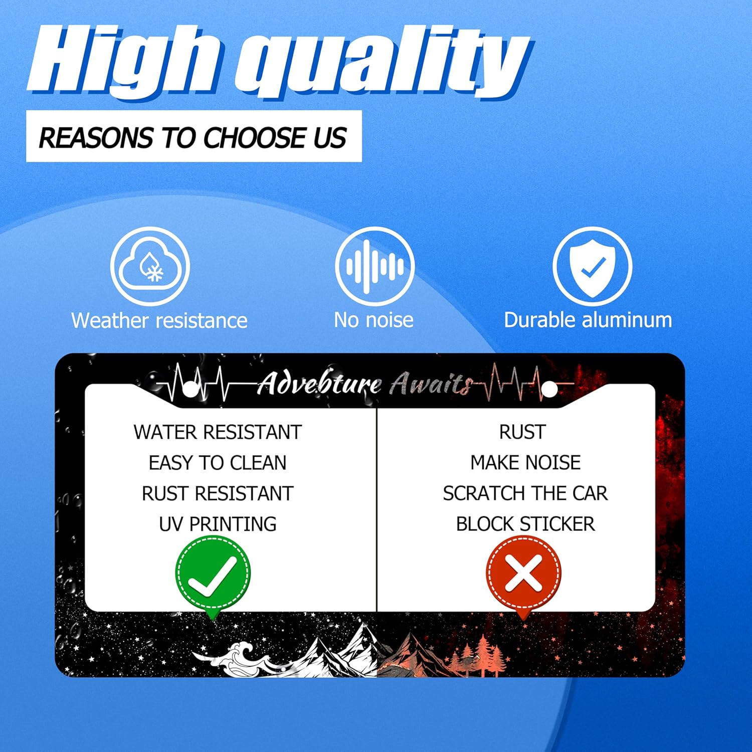 Advebture Awaits License Plate Frame Mountain Waves Forest License Plate Stainless Steel Rust-Proof Metal Funny License Plate Holder Car Accessory With Screws Car Decoration 12.3" x 6.3" For Men Women