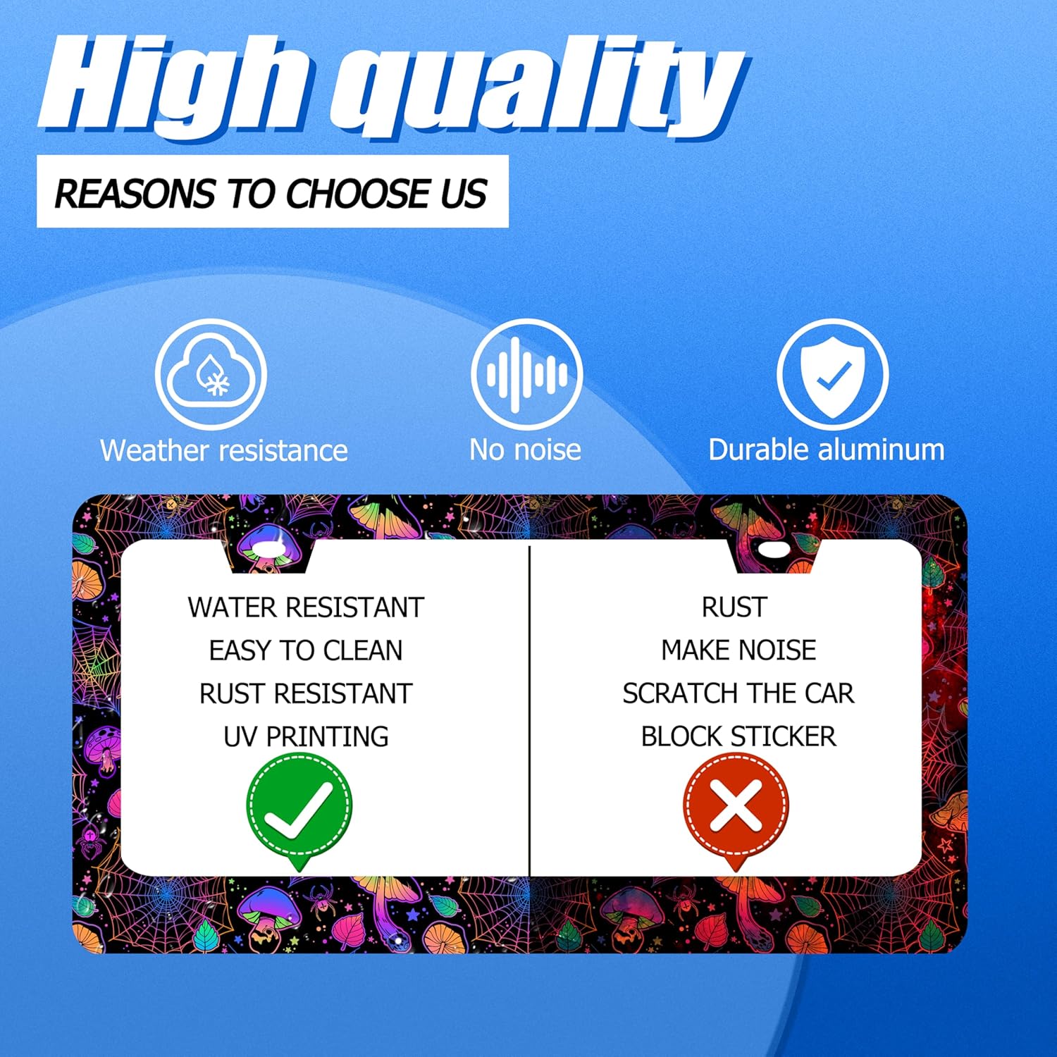 Hippie Mushroom License Plate Frame Mushrooms License Plate Stainless Steel Funny License Plate Holder Colorful Car Accessory with Screws Car Decoration 12.3" x 6.3" for Men Women