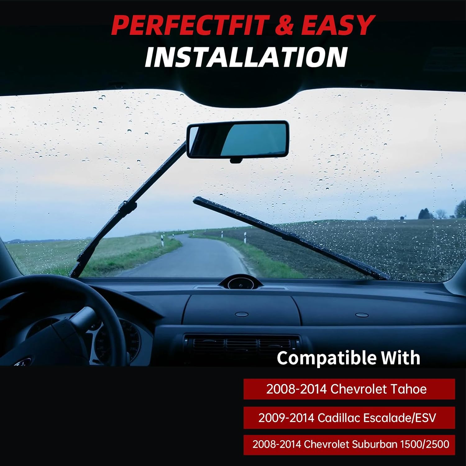 OTUAYAUTO Premium Windshield Wiper Blades - Replacement for Chevrolet Suburban Tahoe 2008-2014, Cadillac Escalade 2009-2014 Front and Rear Wipers J/U Hook - 22"+22"+12" (Pack of 3)