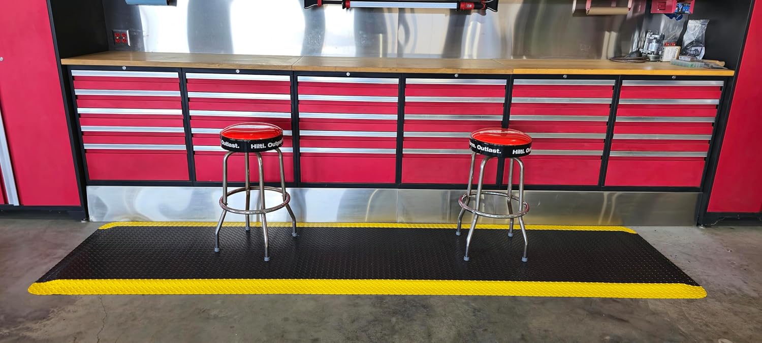 Rhino Mats, American Classic Diamond Anti-Fatigue Mats, Industrial Ergonomic Comfort Standing Mat for Work, Home, Garage, Office, Kitchen or Anywhere (Black/Yellow 9/16" Thick, 3 FT. x 18 FT.)