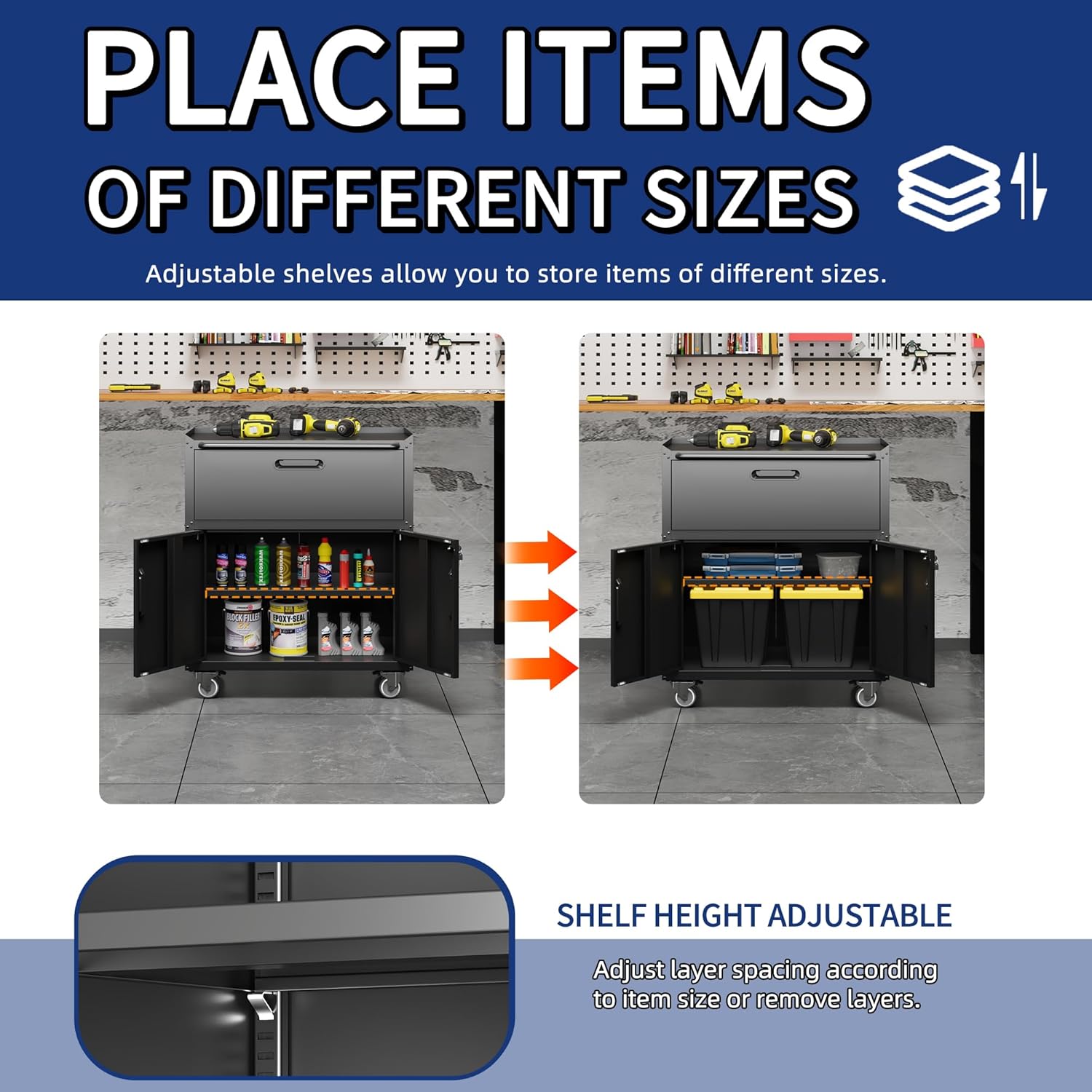 Metal Garage Storage Cabinet with Wheels,Locking Rolling Tool Cabinet with Drawers and Shelves for Home, Office, Garage & Workshop