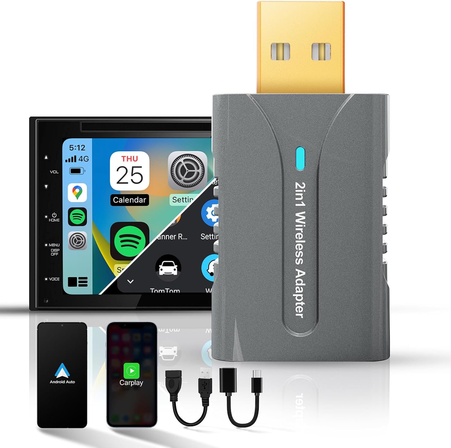 - Package Contents: 2-in-1 Carplay and Android Auto Wireless Adapter x 1, USB A to C x 1, User's Manual x 1, support online report and OTA update. We also provide 24/7 professional technical support to keep your wireless adapter always at its best performance
