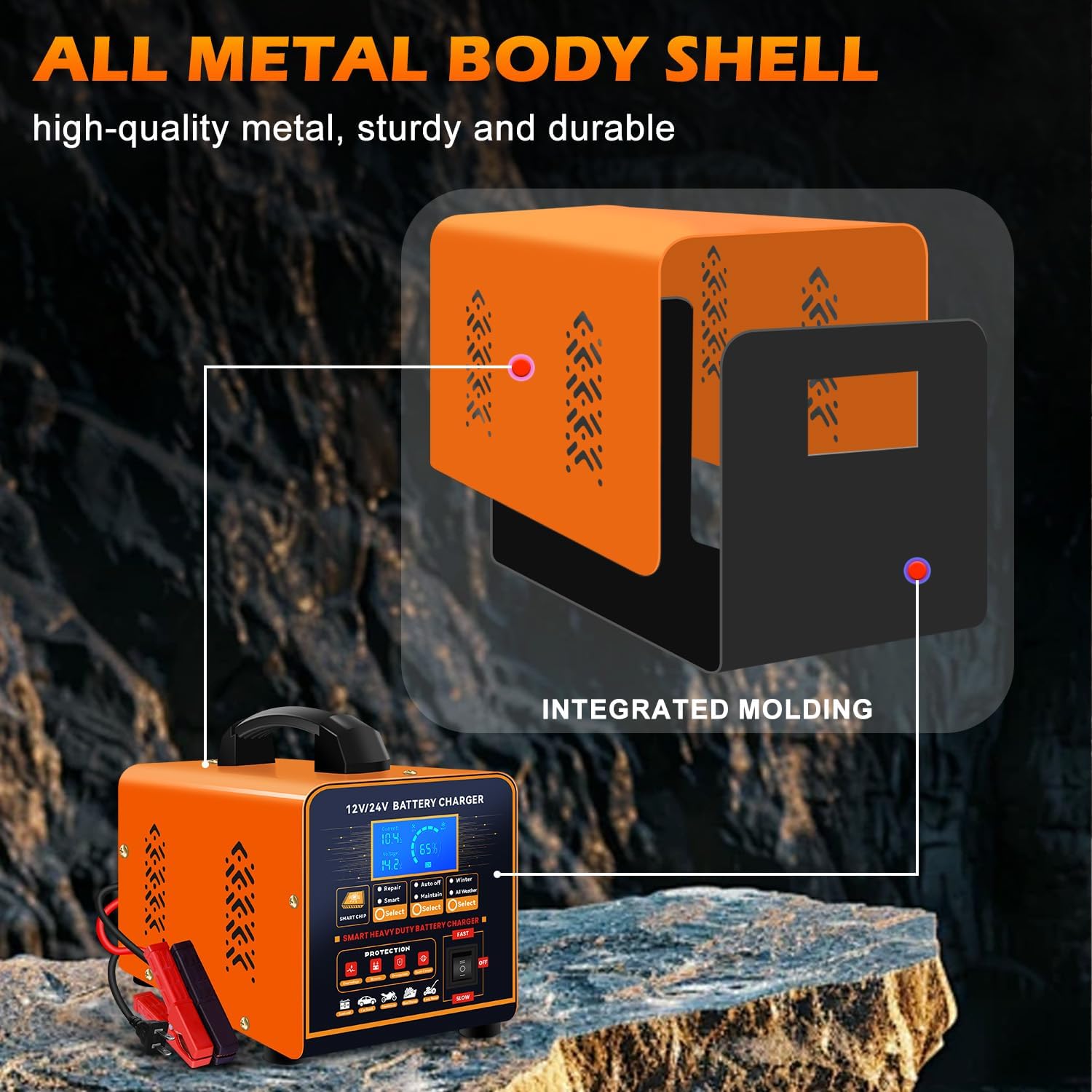 - BUILT FOR ARCTIC COLD & DESERT HEAT: The battery charger maintainer can operate in temperatures ranging from -4°F (-20 °C) to 104°F (40 °C). "Winter Mode", ensures safe battery charging and extends battery life significantly even in cold environments. Heavy duty battery charger has easy-to-read digital LED screen with charge percentage keeps track of the battery's charge status.