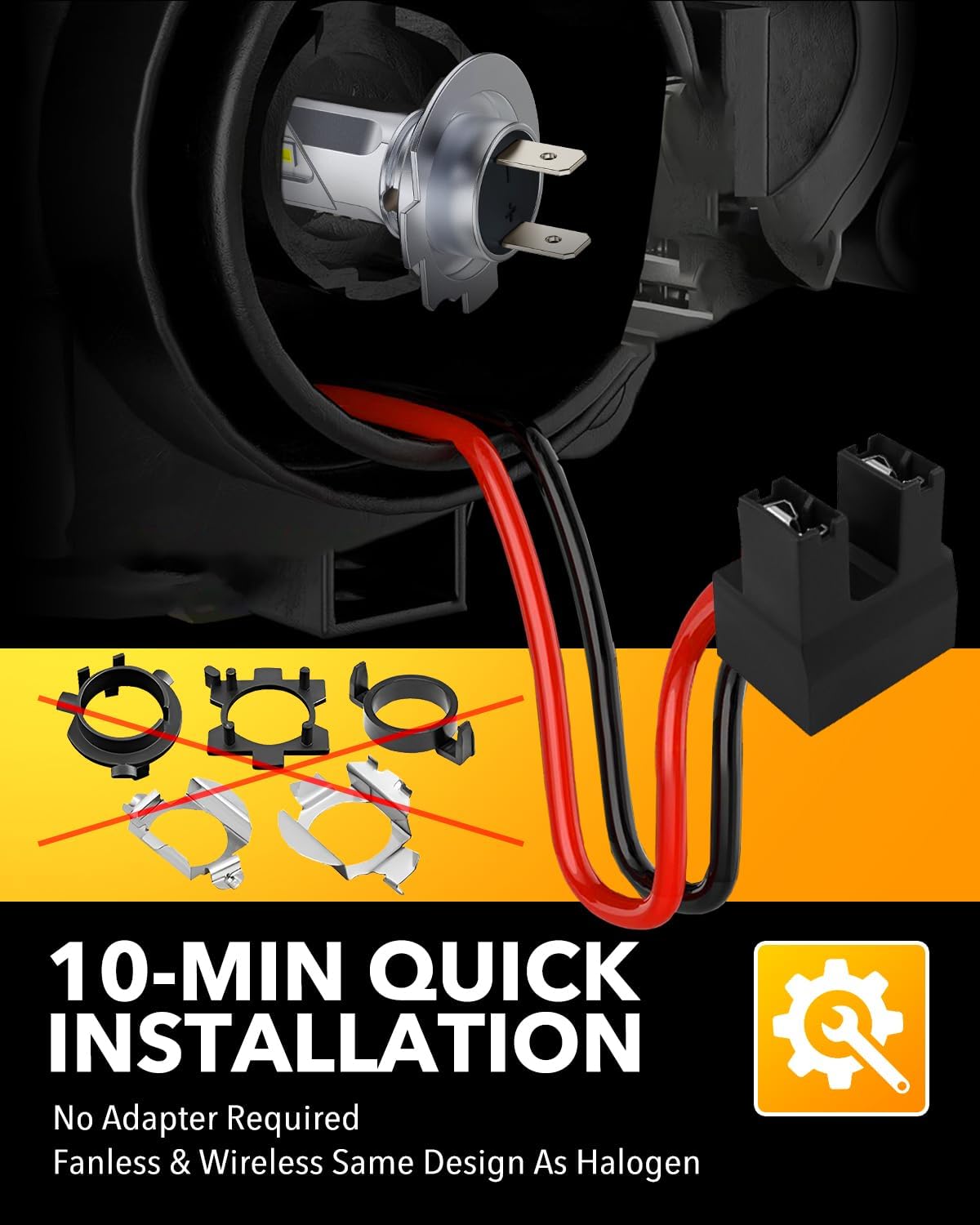 - 6,0000+ Hours Lifespan: The H7 bulb has a whole aluminum body, and dual built-in copper pipes. Adding IP68 Waterproof capabilities, help your lighting system won't be affected by water ingress, maintaining their brightness and clarity, which ensures a longer lifespan up to 6,0000 hours
