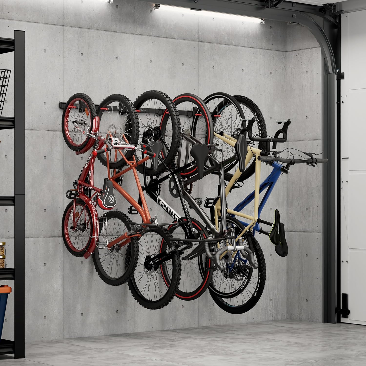 - HIGH CAPACITY BIKE STORAGE β Keep up to 6 bikes organized and off the floor with this space-saving wall-mounted bike rack, ideal for creating an efficient and clutter-free garage or shed.