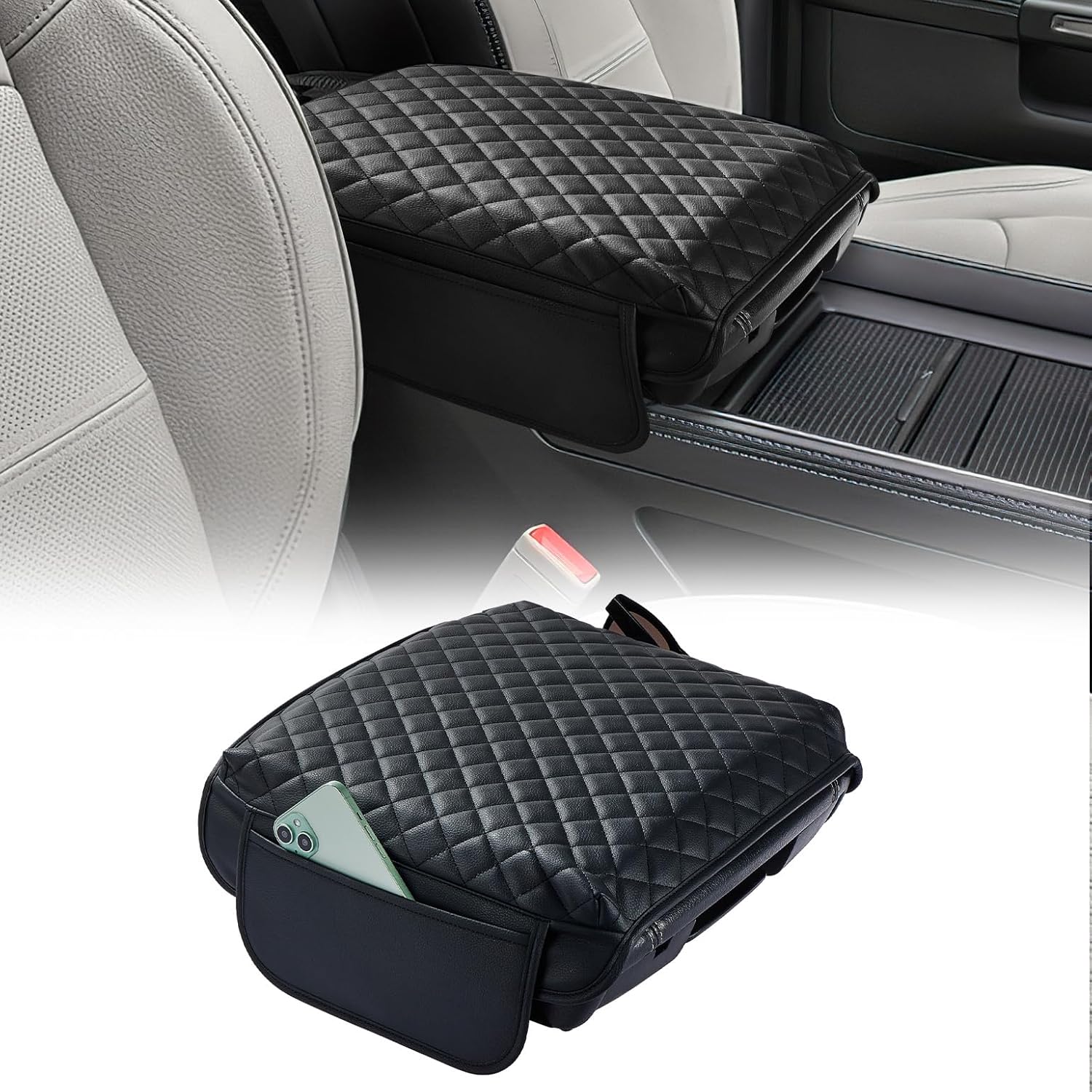 - EXTRA STORAGE FUNCTION - The center console cover has 2 side pockets so that you can store your phone, cards, keys, and all your quick-grab items