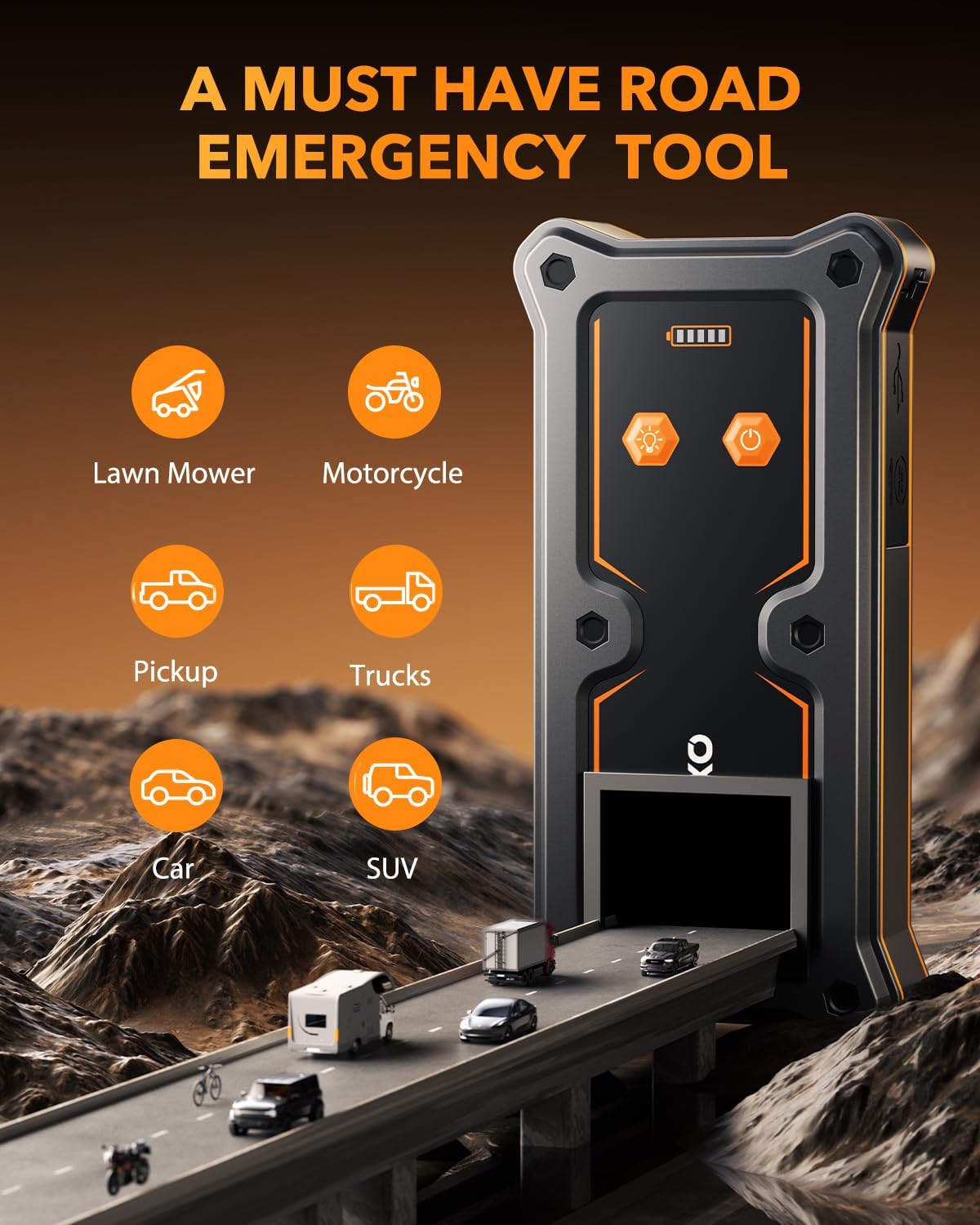 - ăAdvanced Safety TechnologyăThe jump box provides 10 comprehensive safeties, including reverse polarity, overcurrent, reverse connection, overvoltage, overcharge, overdischarge, overload, short circuit, low/high-temperature protection, and spark-resistance. The more rugged shell protects the jump starter from harsh outdoor environments such as water, dust, and bumps, and it can work in extremely cold and hot conditions. Perfect for northern areas with harsh winters, don't hesitate to choose it