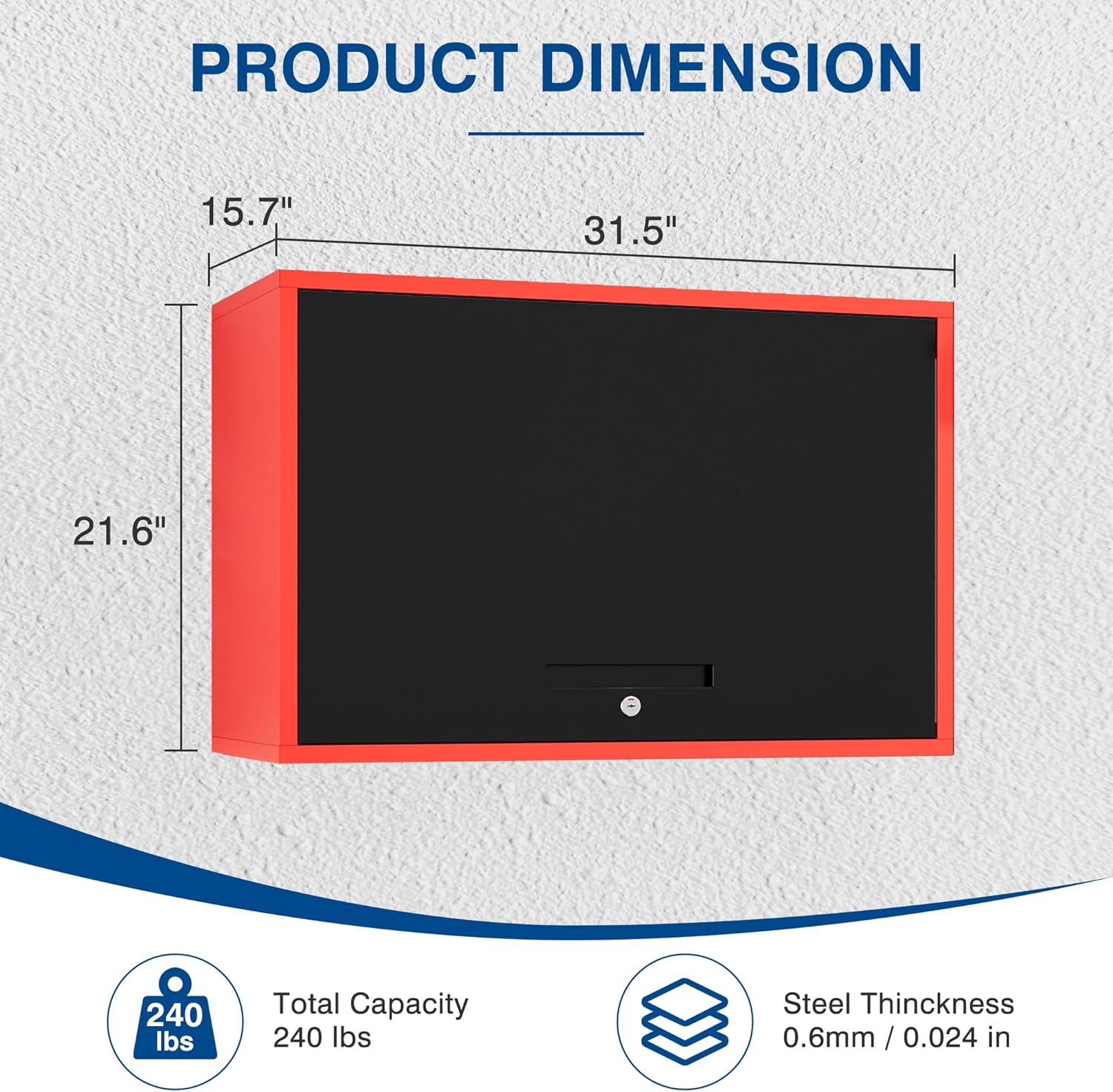 Metal Storage Cabinet Black Red Wall Cabinets with Shelf and Locking Door - Wall Mounted Storage Cabinet for Garage Warehouse Home Office - Assembly Required