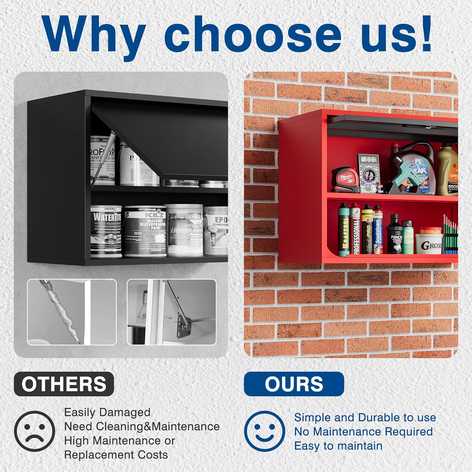 - Maintain a Tidy Room - This metal wall cabinet offers ample storage space for you, perfect for organizing tools, office supplies, household items, and more. It can be mounted on the wall of your garage, office, utility room, or any space where clutter needs to be tidied up.