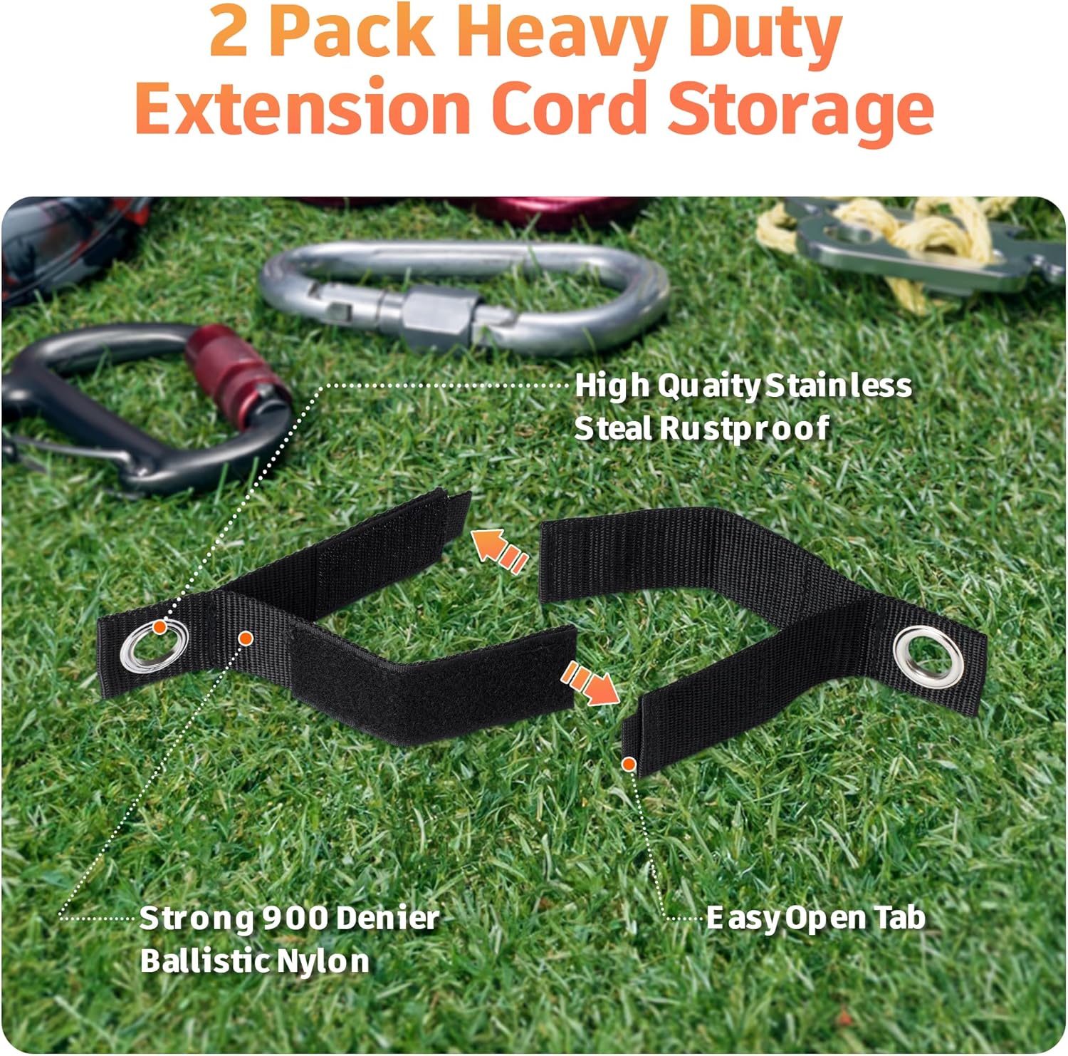 - Pack of 2 Heavy-Duty Storage Straps: Constructed from heavy-duty weatherproof polypropylene, featuring industrial-strength hook and loop fasteners and rust-resistant stainless steel grommets, these heavy-duty storage straps are designed for long-lasting use—indoors or outdoors. With a capacity to hold up to 50 lbs (22 kg), you can say goodbye to bulky cord reels. Nacial storage straps are the ultimate solution for organizing extension cords, hoses, ropes, and much more!