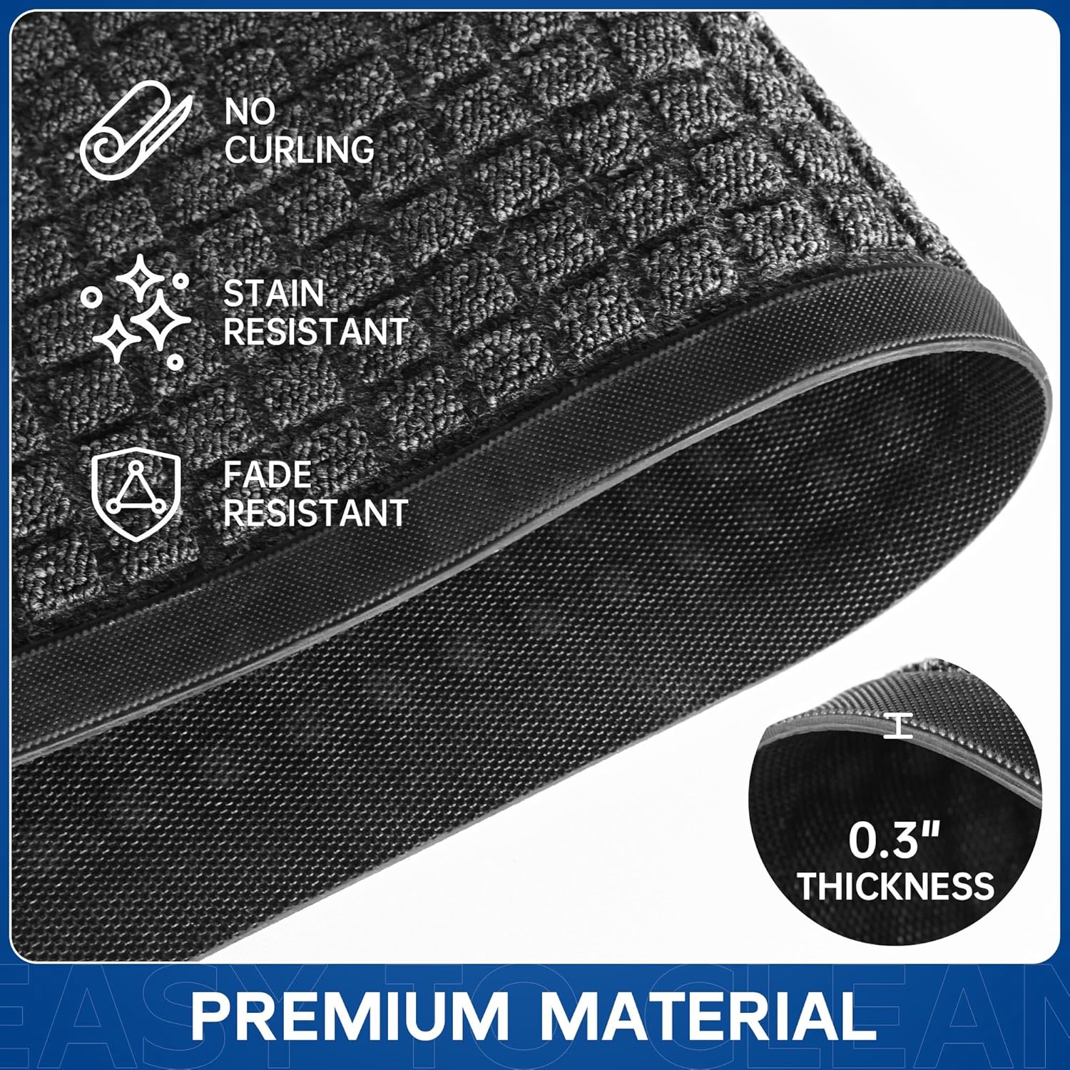 - Highly Durable for High - Traffic Areas: This heavy-duty door mat is made of premium fibers and tough tp rubber, Has a high-density, stain-resistant surface. outdoor door mat offers excellent durability and tear resistance to withstand high foot traffic