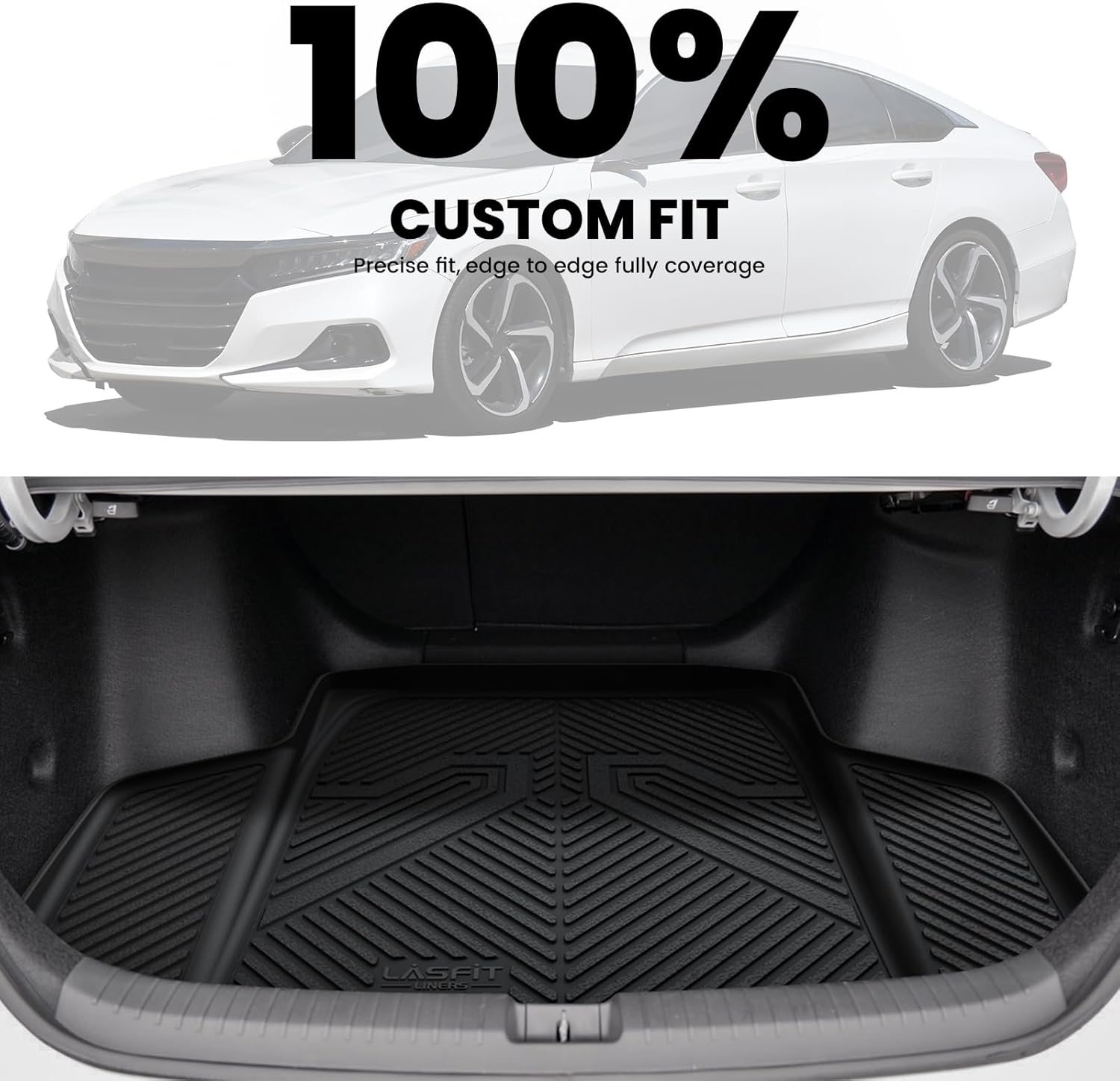 LASFIT Trunk Mat for Honda Accord Seden 2018 2019 2020 2021 2022 2023 2024 2025 (Include Hybrid Models), All Weather TPE Custom Fit Accord Trunk Liner Trunk Tray Cargo Liner Accessories, Black